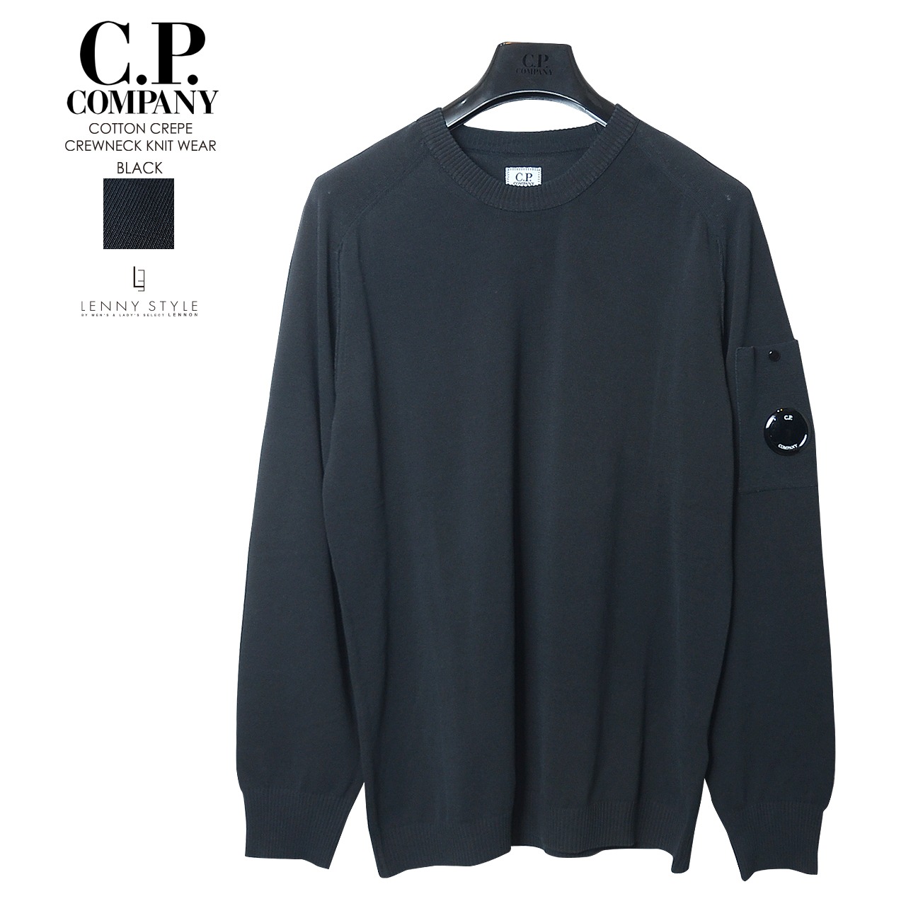 CPカンパニー ( シーピーカンパニー ) ( C.P.COMPANY )コットンクレープ クルーネック ニット ( 綿ニット ) ( Cotton Crepe CrewNeck KnitWear ) - BLACK - ブラック