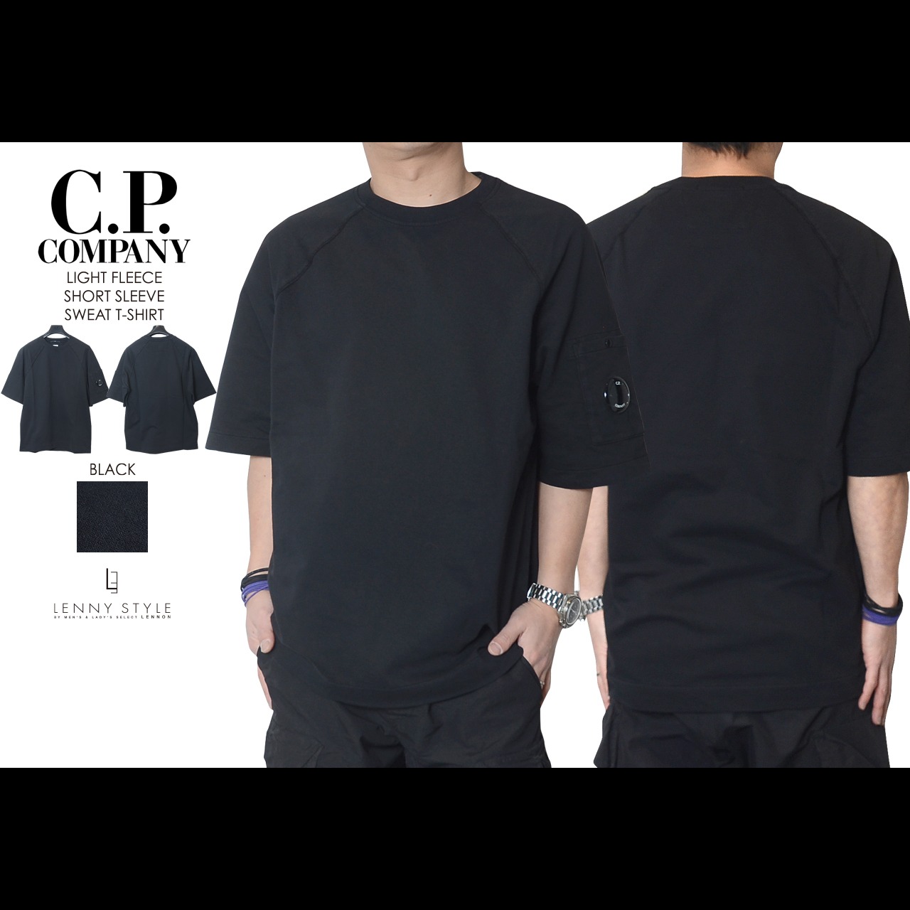 CPカンパニー ( シーピーカンパニー ) ( C.P.COMPANY )クルーネック 半袖 ライトスエット ( プルオーバー ハーフスリーブ ライトスエットTシャツ ) ( Light Fleece Short Sleeve Sweatshirt )( BOX FIT ) - BLACK - ブラック