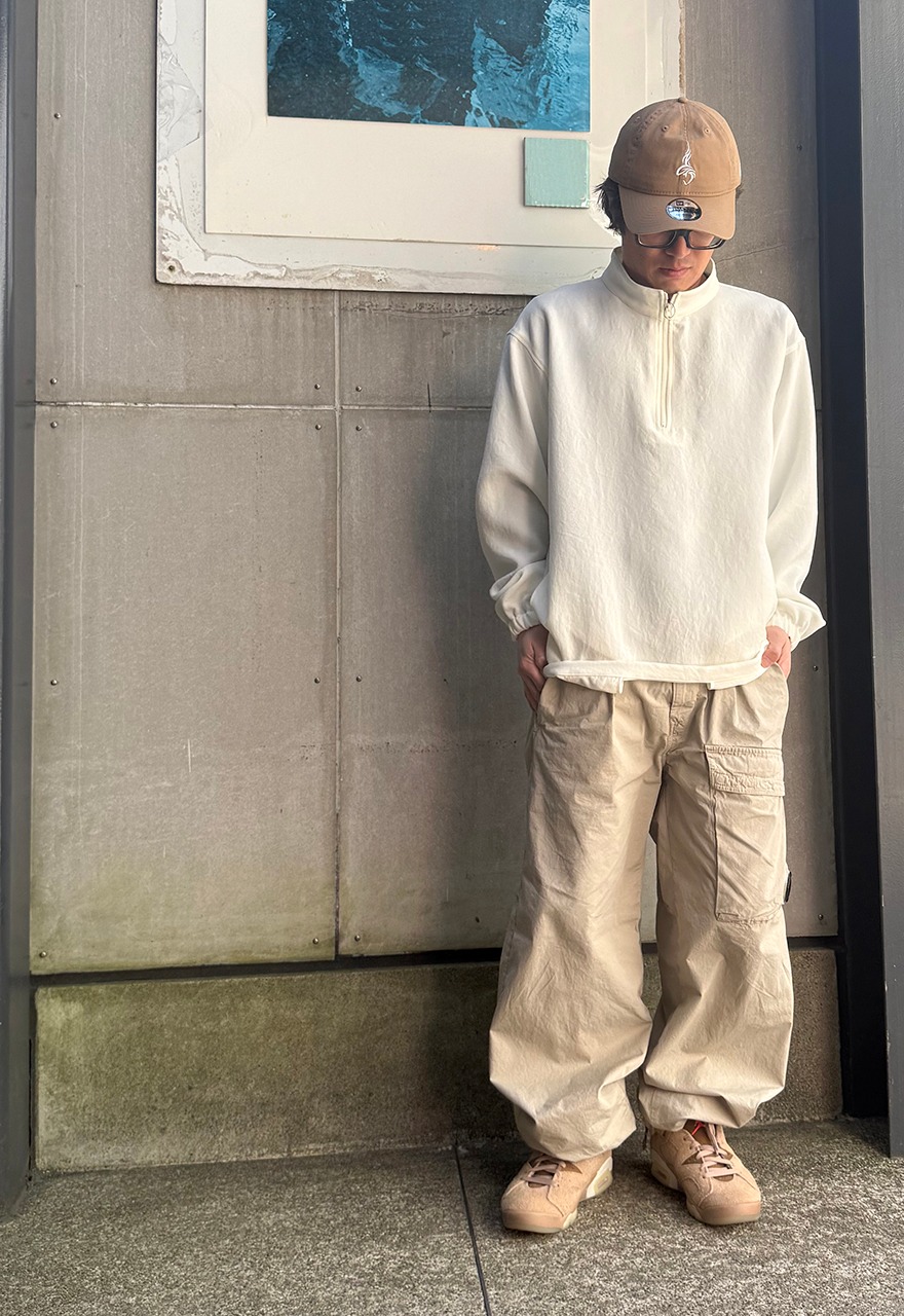 適度なゆとり感のあるシルエットに仕上げたハーフジッププルオーバー。