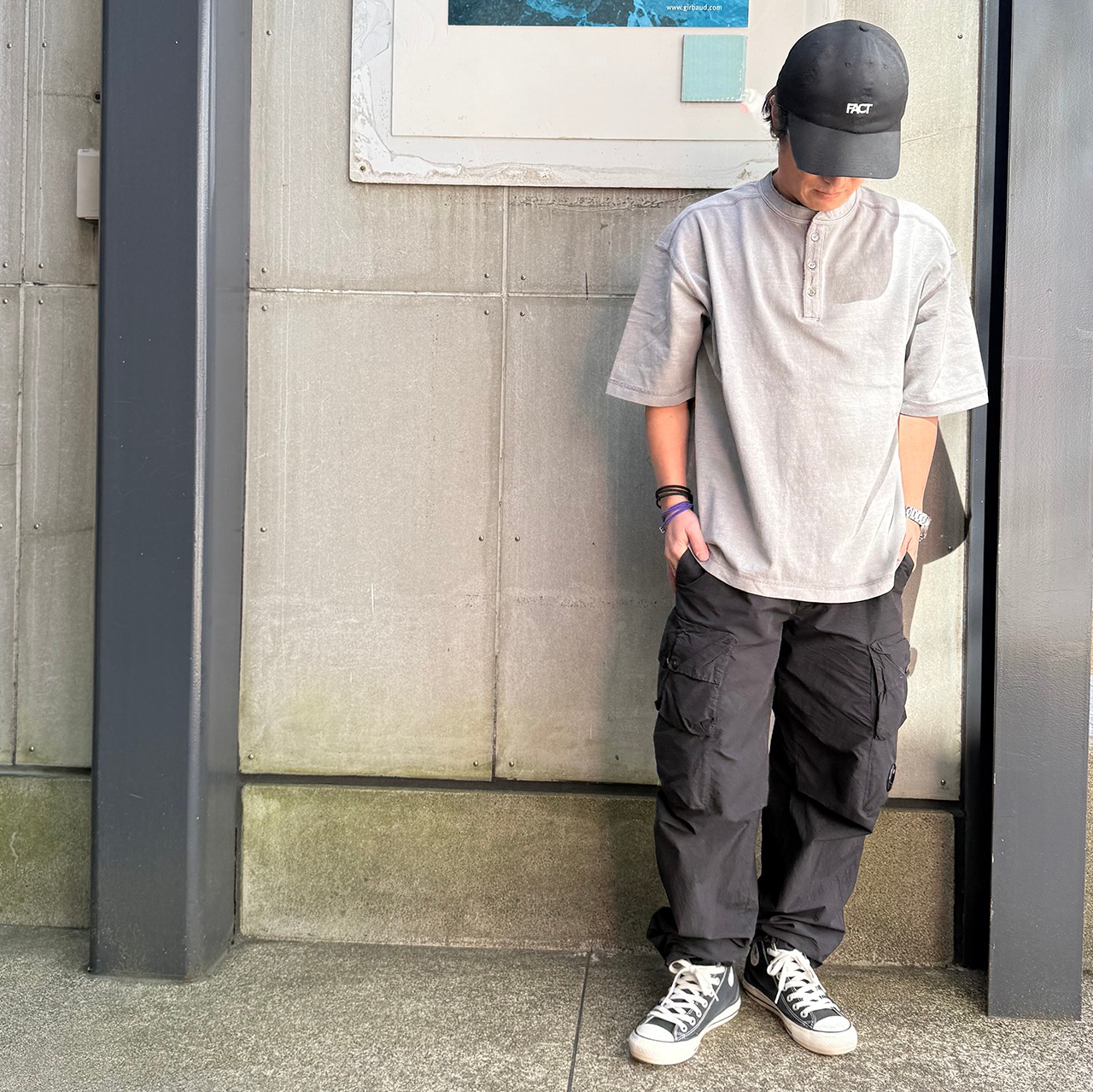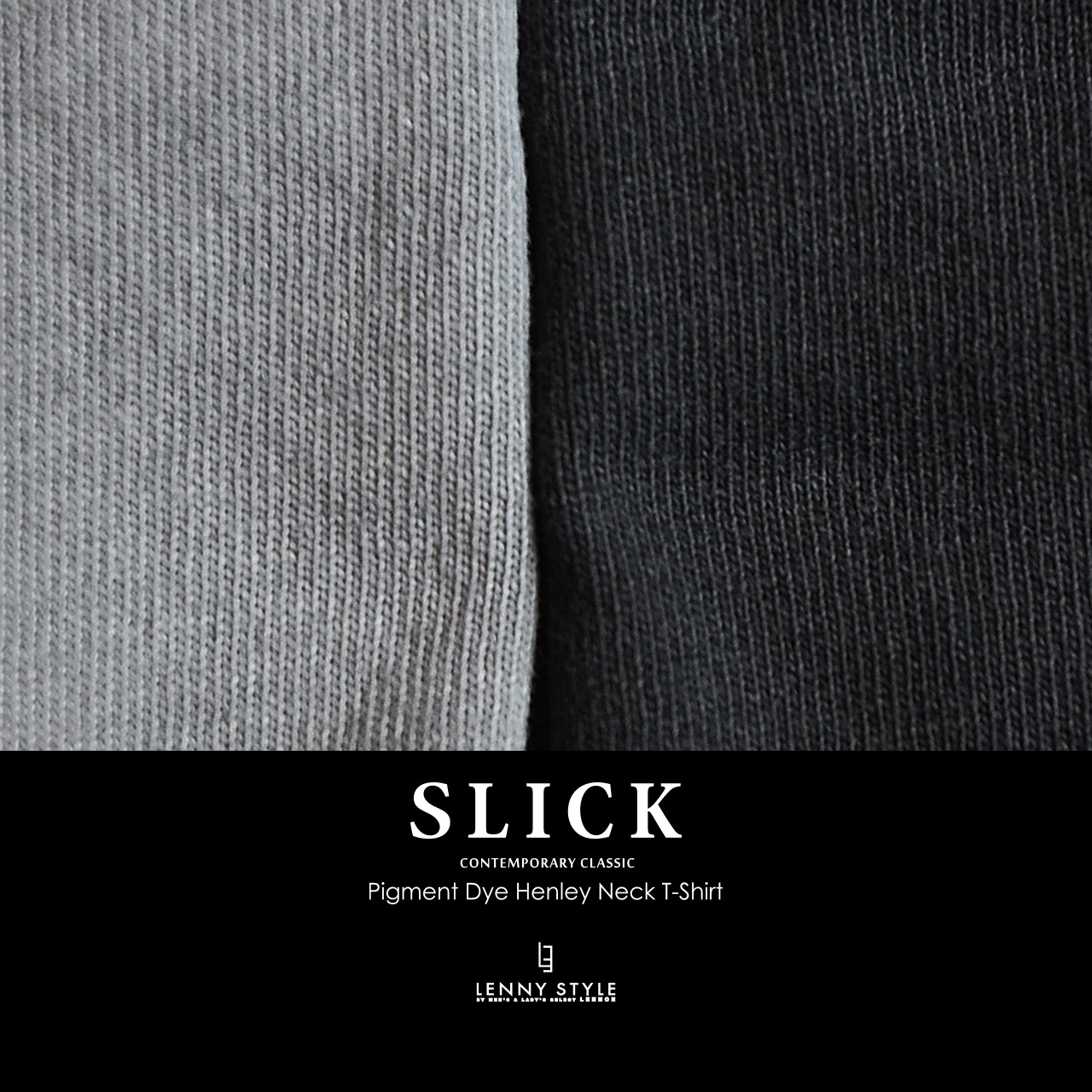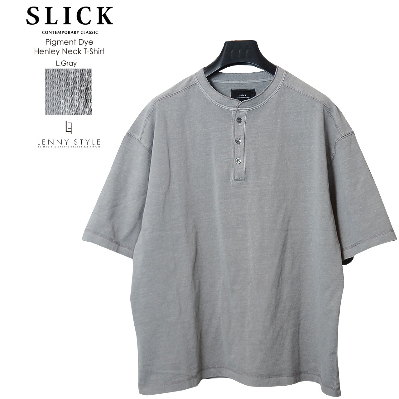 SLICK ( スリック ) ピグメント ヘンリーネック 半袖 Tシャツ - カットソー - ( Pigment Dye Henley Neck T-Shirt)ライトグレー / ブラック( 5230243 )