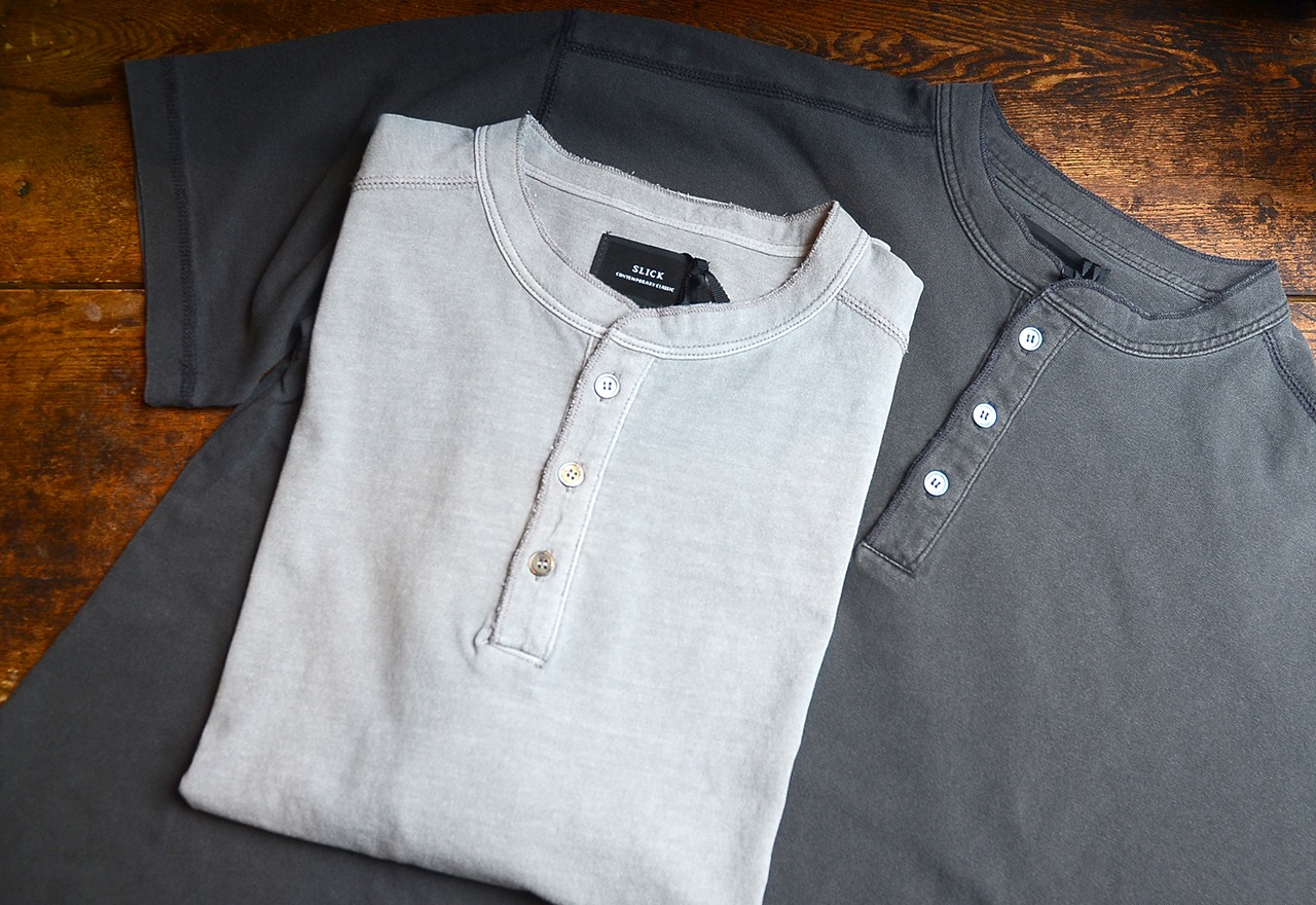 SLICKからヴィンテージライクな素材感のヘンリーネックTシャツが入荷です。