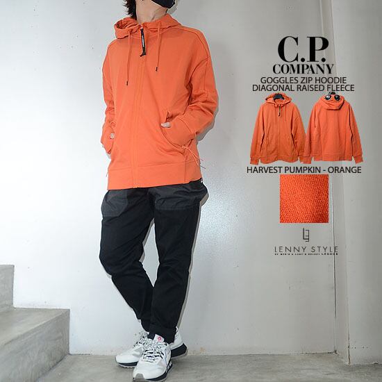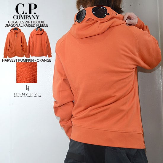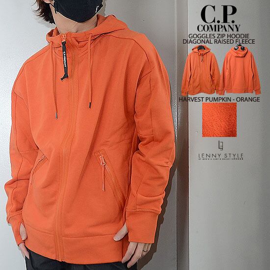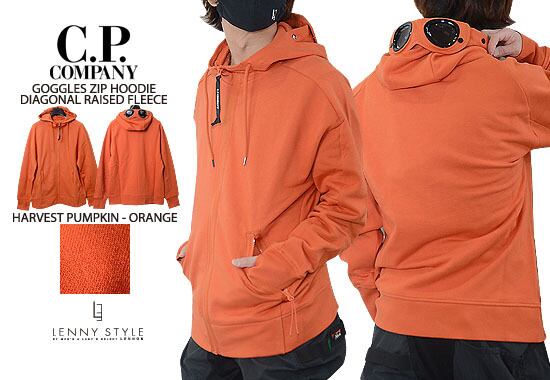 CPカンパニー ( シーピーカンパニー ) ( C.P.COMPANY )ゴーグル ジップ フーディー ( ジップ パーカー ) ( DIAGONAL RAISED FLEECE ) - HARVEST PUMPKIN - オレンジ