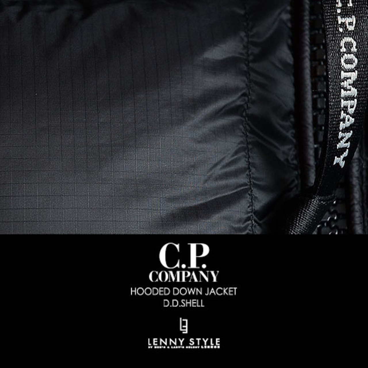 CPカンパニー定番素材、7デニールのマットなマイクロリップストップナイロン、D.D. Shellを使用したダウンジャケット。
