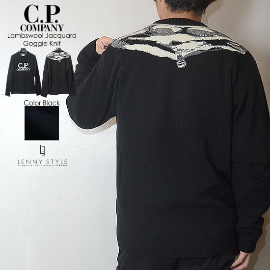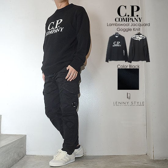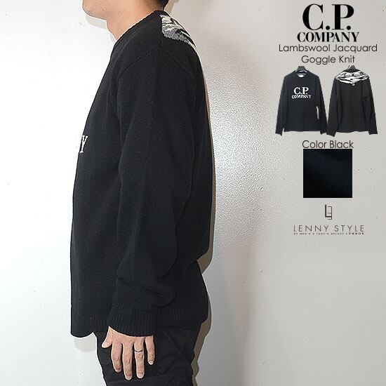 CPカンパニー ( シーピーカンパニー ) ( C.P.COMPANY ) クルーネック ニット ( ロゴニット ) ( ラムウール ニット )( ゴーグルグラフィック ニット ) ( Lambswool Jacquard Goggle Knit ) - ブラック