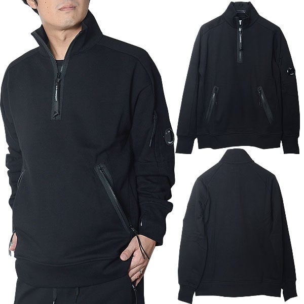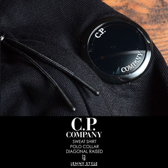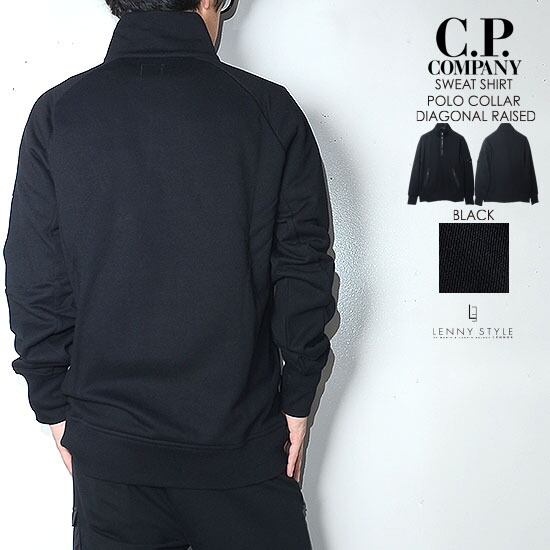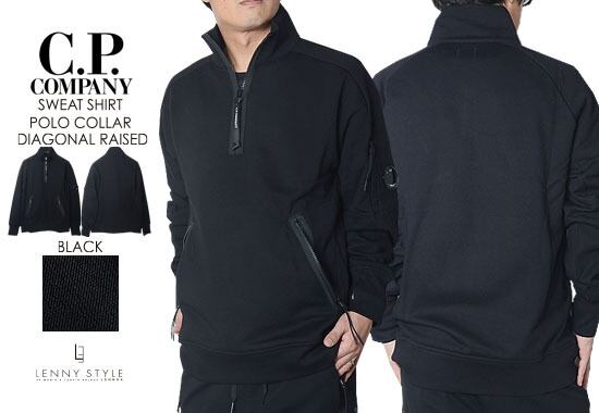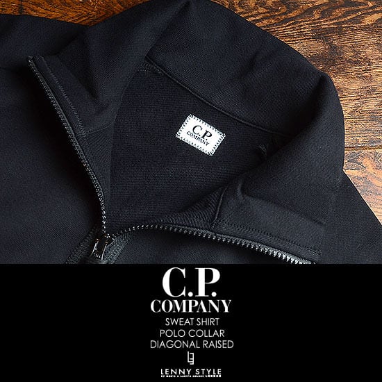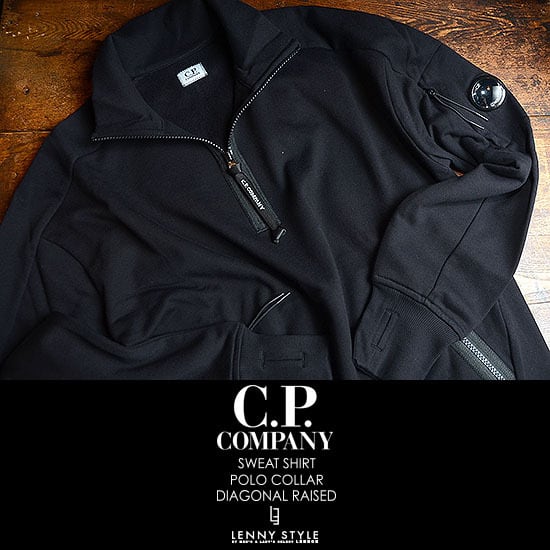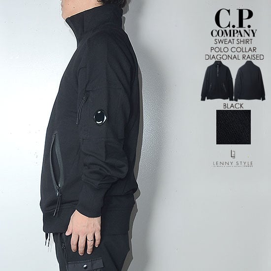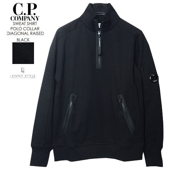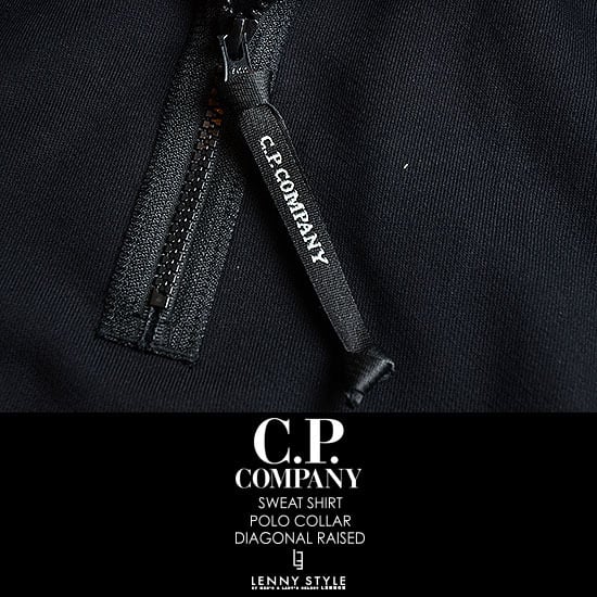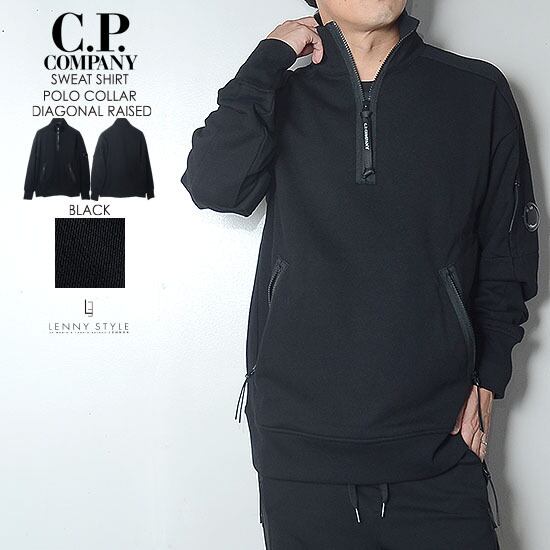 CPカンパニー ( シーピーカンパニー ) ( C.P.COMPANY ) ハーフジップ プルオーバー スエット -( ハーフジップ スウェット ) ( SWEAT-SHIRT POLO COLLAR ) ( DIAGONAL RAISED FLEECE ) - BLACK - ブラック