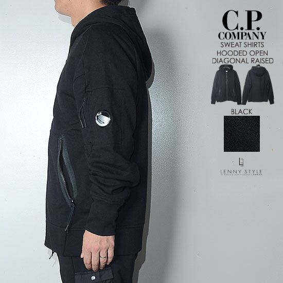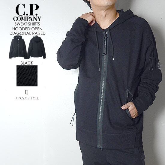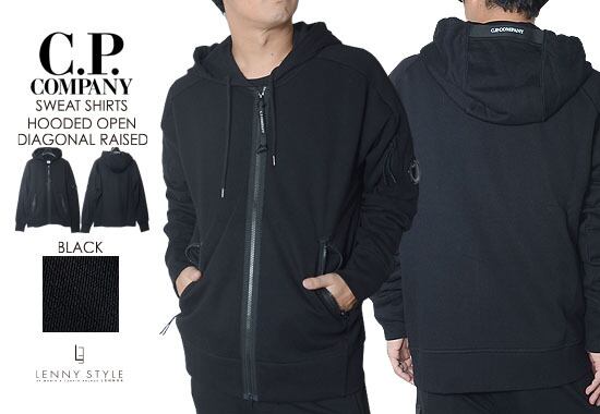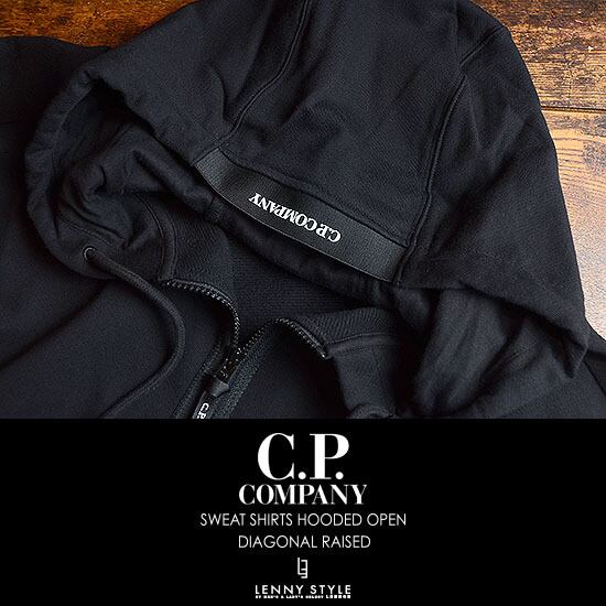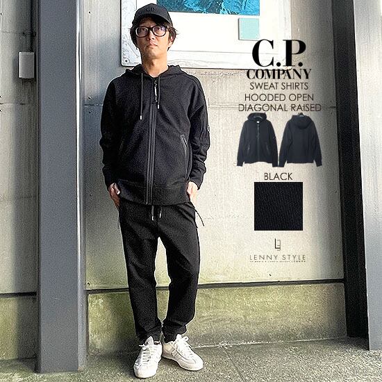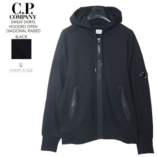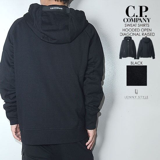 CPカンパニー ( シーピーカンパニー ) ( C.P.COMPANY ) ジップフーディー -( ジップパーカー ) ( SWEAT-SHIRT HOODED OPEN ) ( DIAGONAL RAISED FLEECE ) - BLACK - ブラック