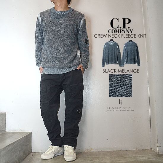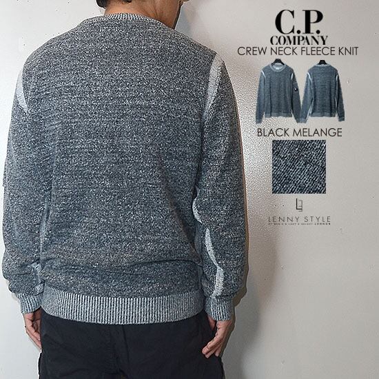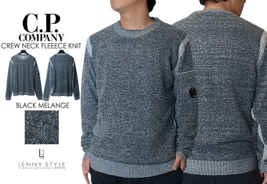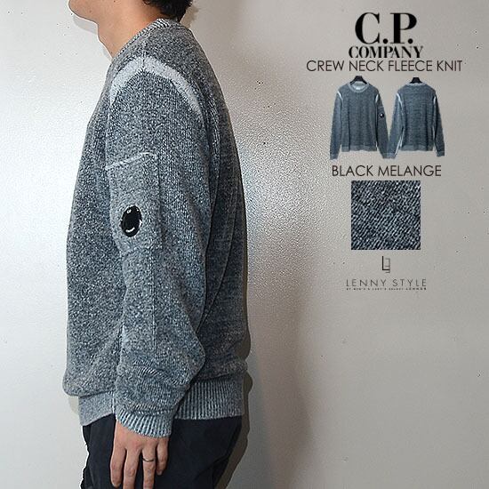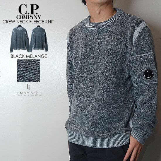 CPカンパニー ( シーピーカンパニー ) ( C.P.COMPANY ) クルーネック フリースニット -( 丸首ニット ) ( KNIT WEAR - CREW NECK ) - ブラックメランジ - BLACK MELANGE