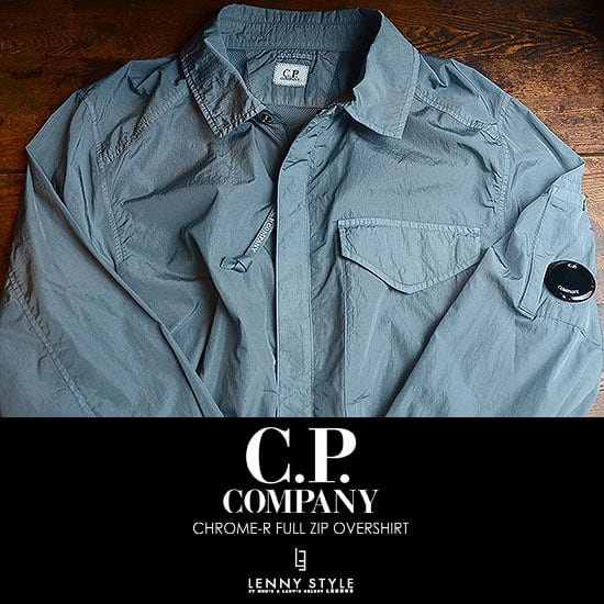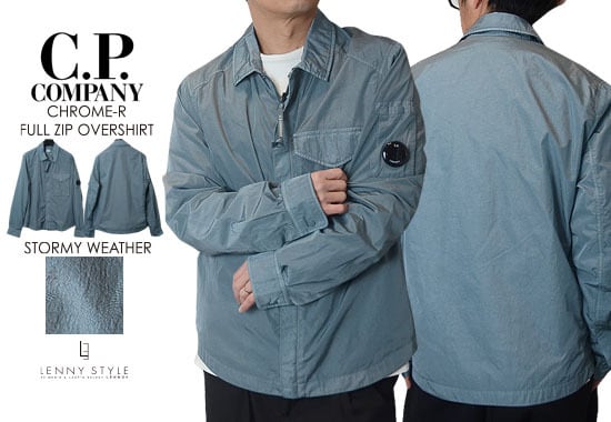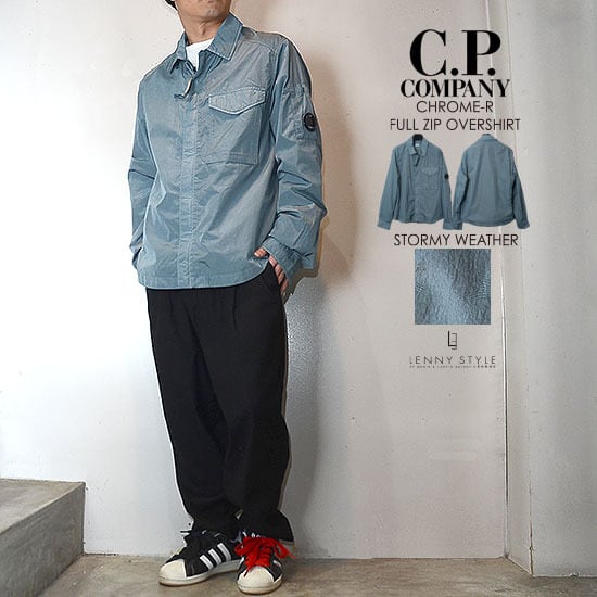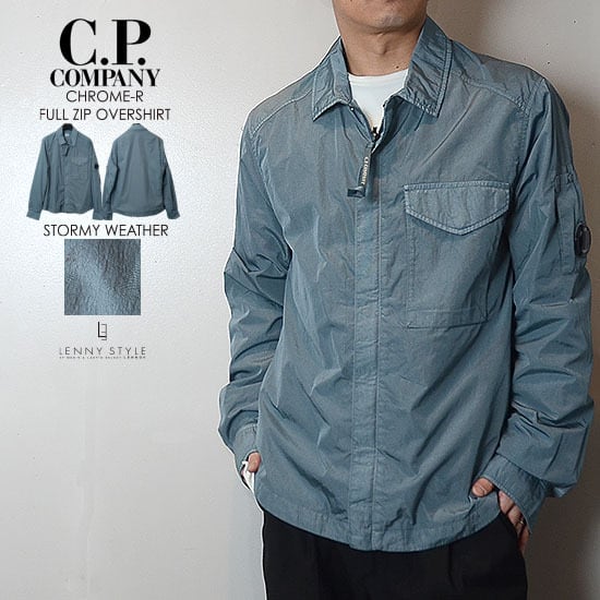 CPカンパニー ( シーピーカンパニー ) ( C.P.COMPANY )ナイロン ジップシャツ ジャケット ( シャツブルゾン ) ( Chrome-R Full Zip Overshirt ) - STORMY WEATHER - ブルーグレー