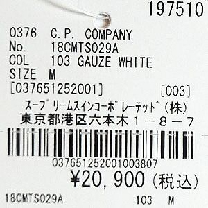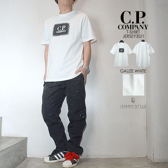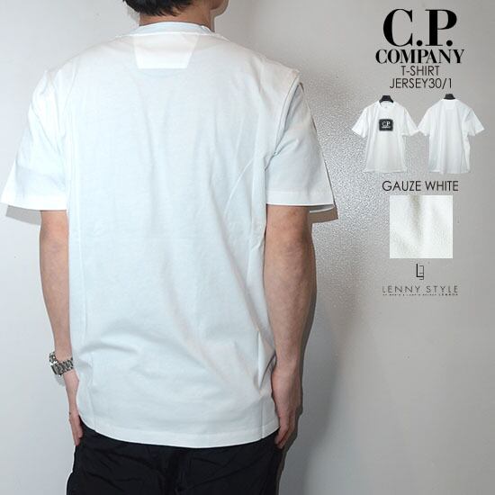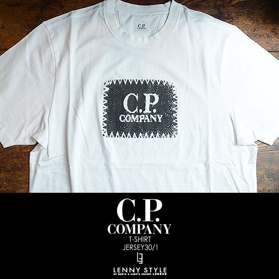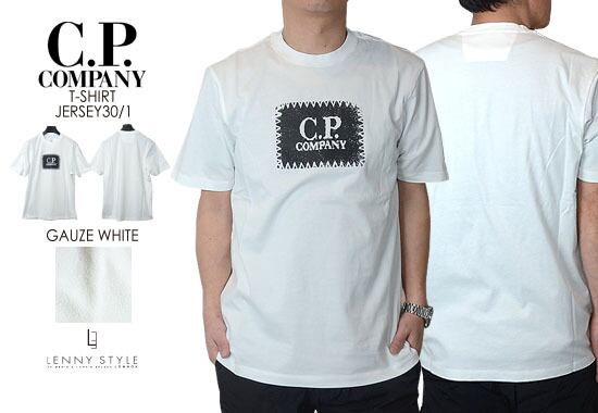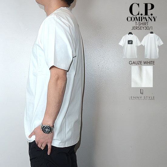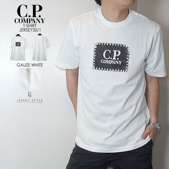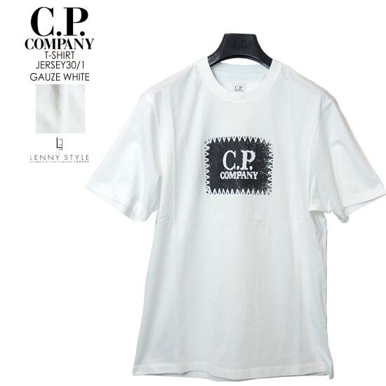 CPカンパニー ( シーピーカンパニー ) ( C.P.COMPANY )クルーネック 半袖 プリント Tシャツ ( 30/1 Jersey Logo Label T-Shirt ) - GAUZE WHITE - ホワイト