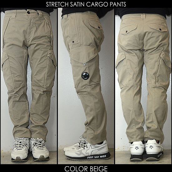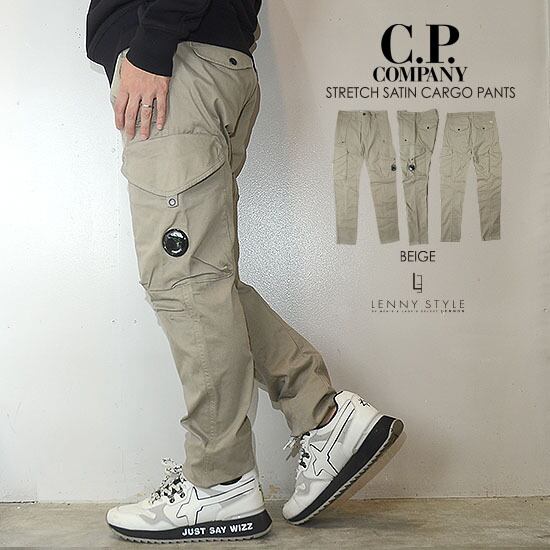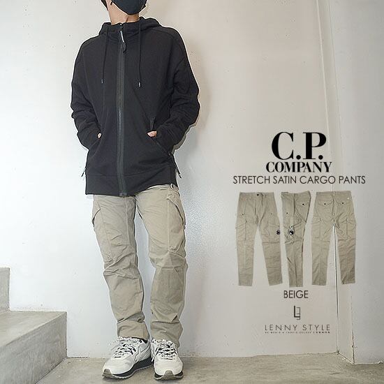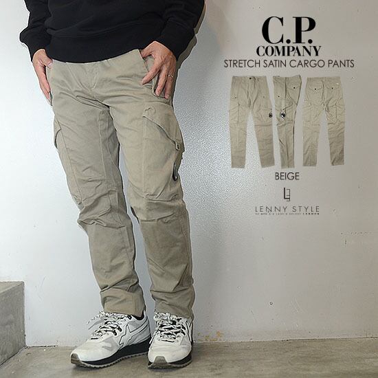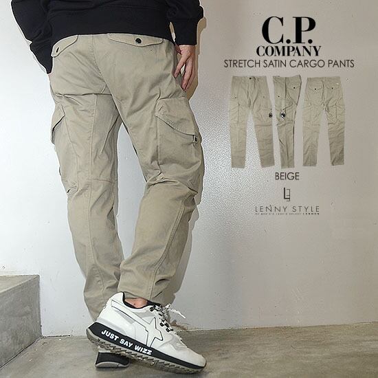 CPカンパニー ( シーピーカンパニー ) ( C.P.COMPANY )カーゴパンツ ( サテンストレッチ )スリムフィット - ベージュ