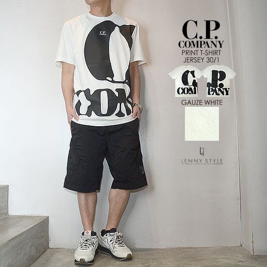 CPカンパニー ( シーピーカンパニー ) ( C.P.COMPANY )プリント 半袖 Tシャツ ( カットソー ) ( JERSEY 30/1 ) - GAUZE WHITE - ホワイト