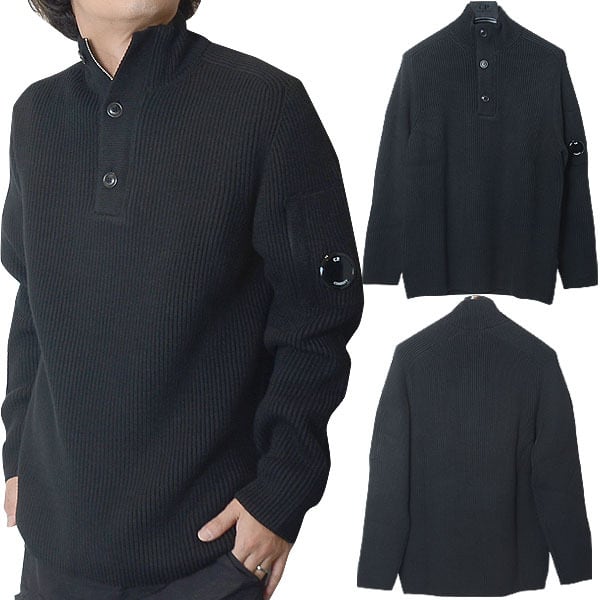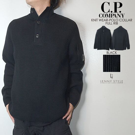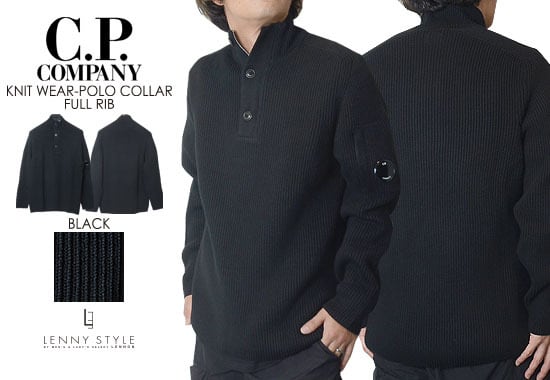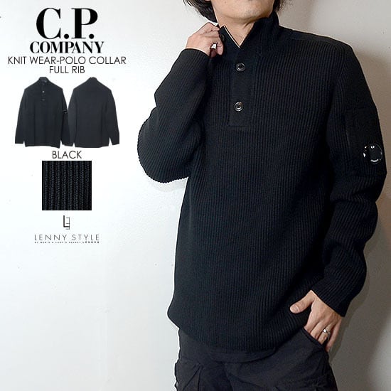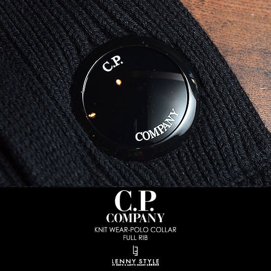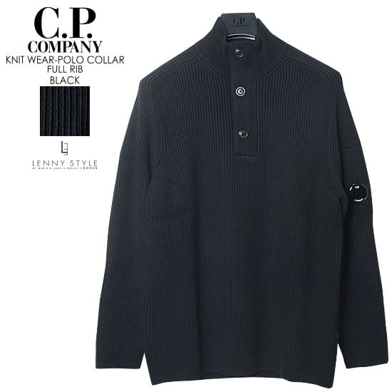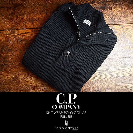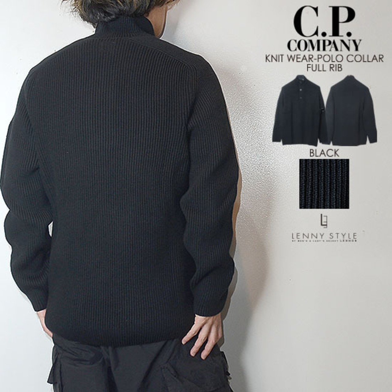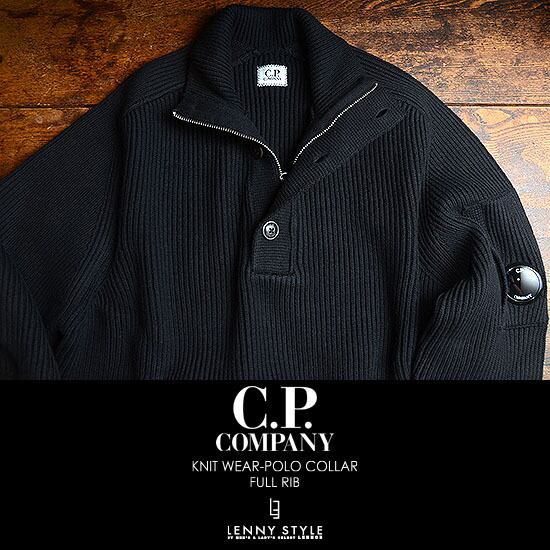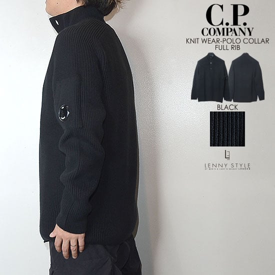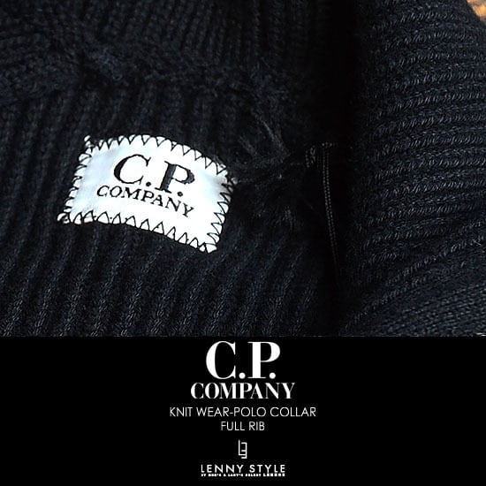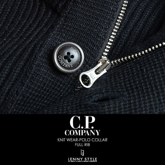 CPカンパニー ( シーピーカンパニー ) ( C.P.COMPANY )ハーフジップ ポロニット ( KNIT WEAR - POLO COLLAR ) ( FULL RIB )コットン+ナイロン - ブラック