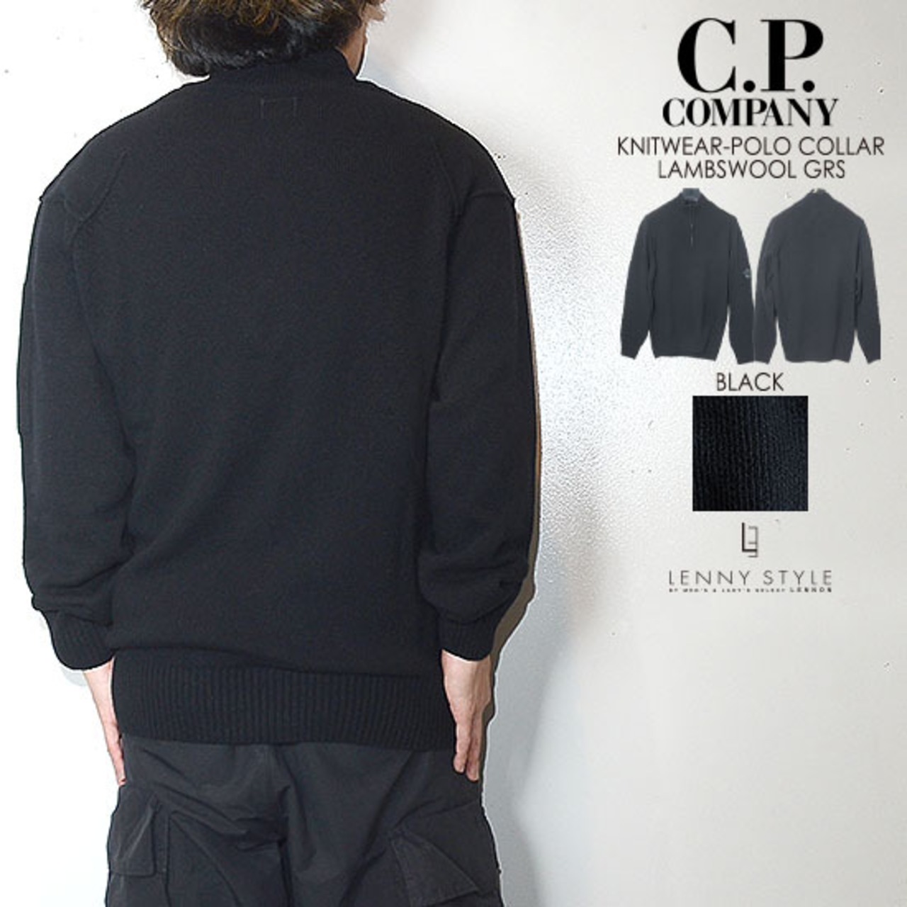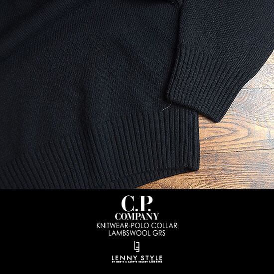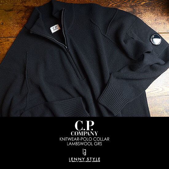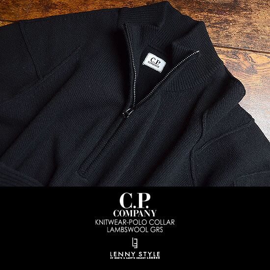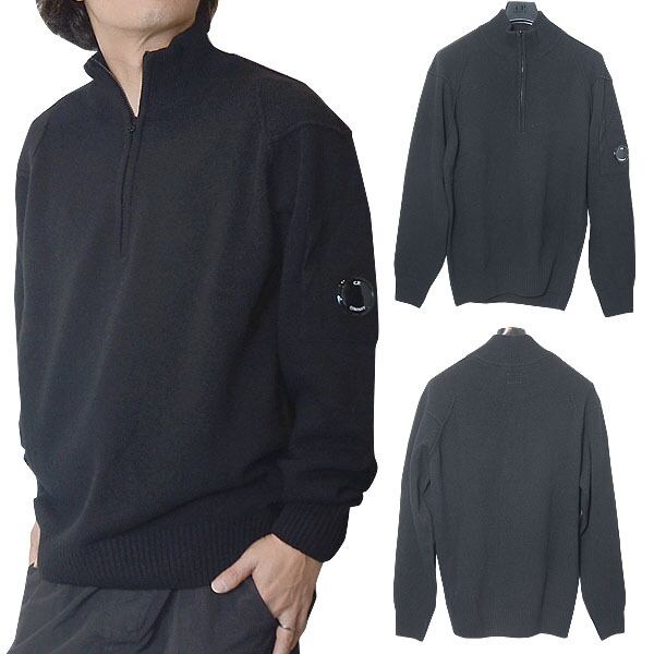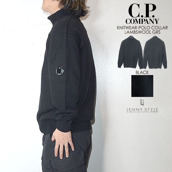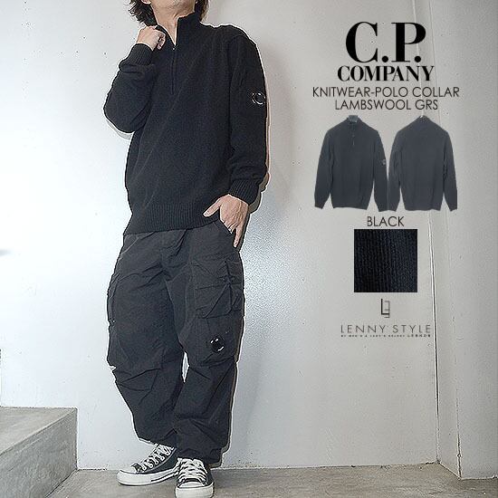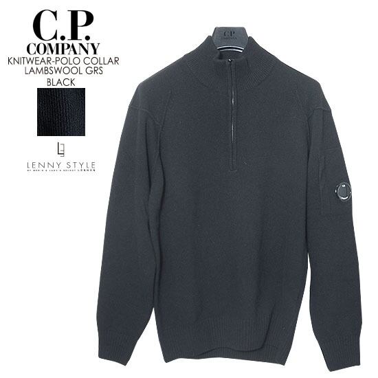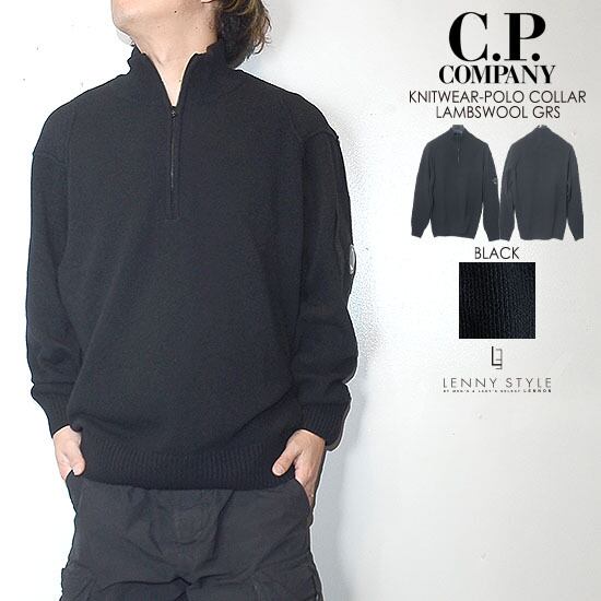 CPカンパニー ( シーピーカンパニー ) ( C.P.COMPANY ) ハーフジップ ニット -( ジップポロニット ) ( KNIT WEAR - POLO COLLAR )( LAMBSWOOL GRS ) - ブラック