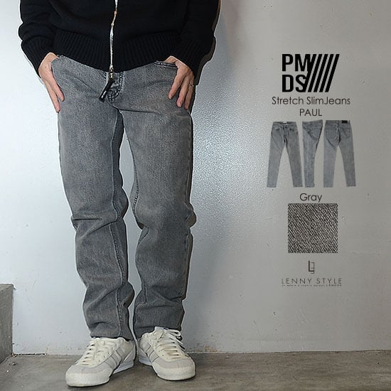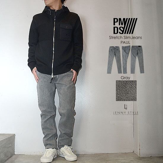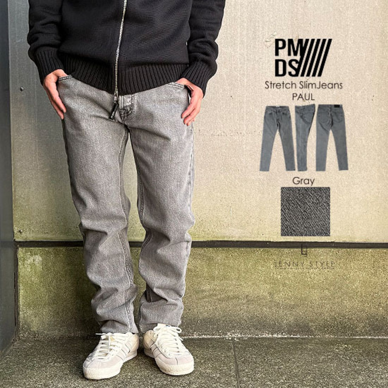 PMDS ( P.M.D.S. ) ( ピーエムディーエス ) ストレッチ スリム ジーンズ -( ポール ) ( PAUL ) ストレッチデニム - グレー
