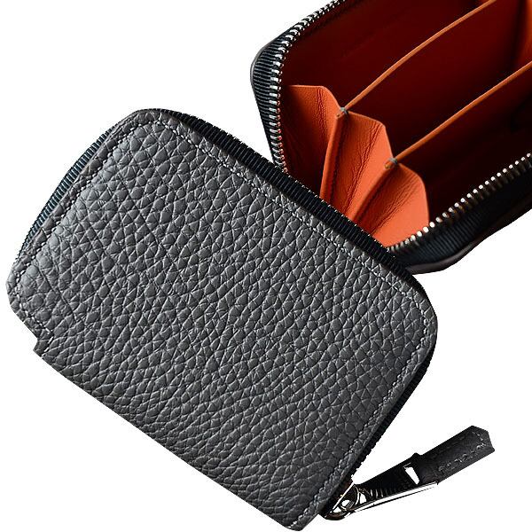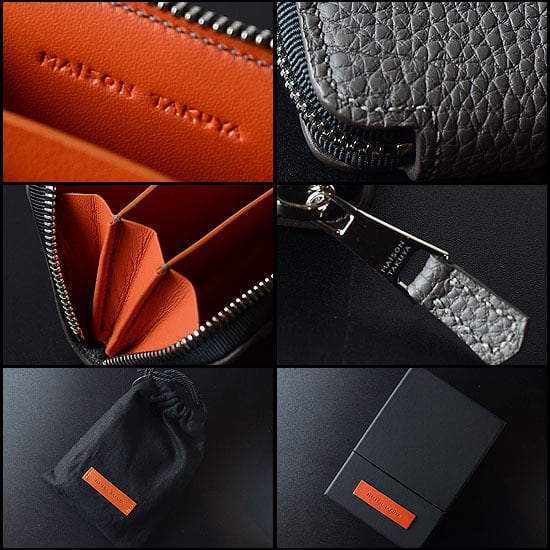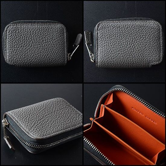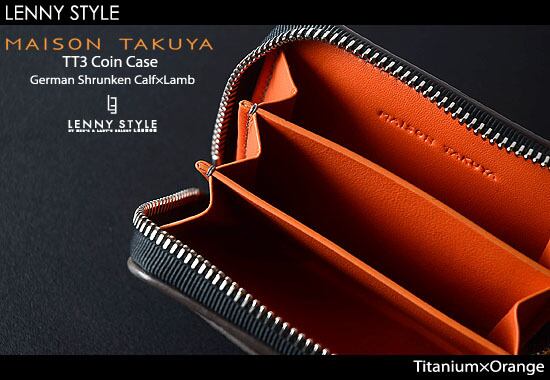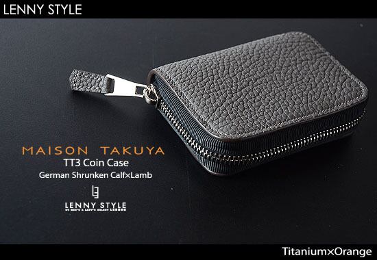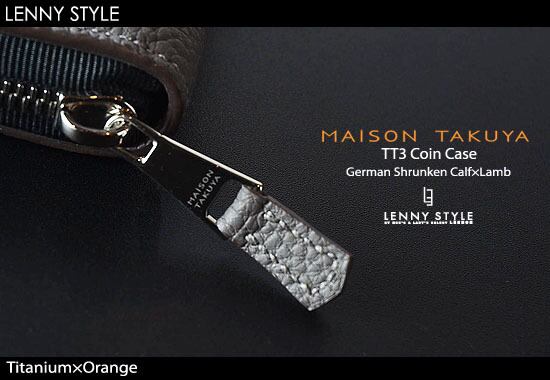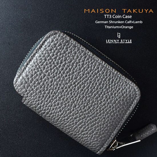 メゾンタクヤ(MAISON TAKUYA)TT3コインケース-ラウンドジップミニウォレット(財布)チタニウム×オレンジ-ジャーマンシュランケンカーフ×ラム