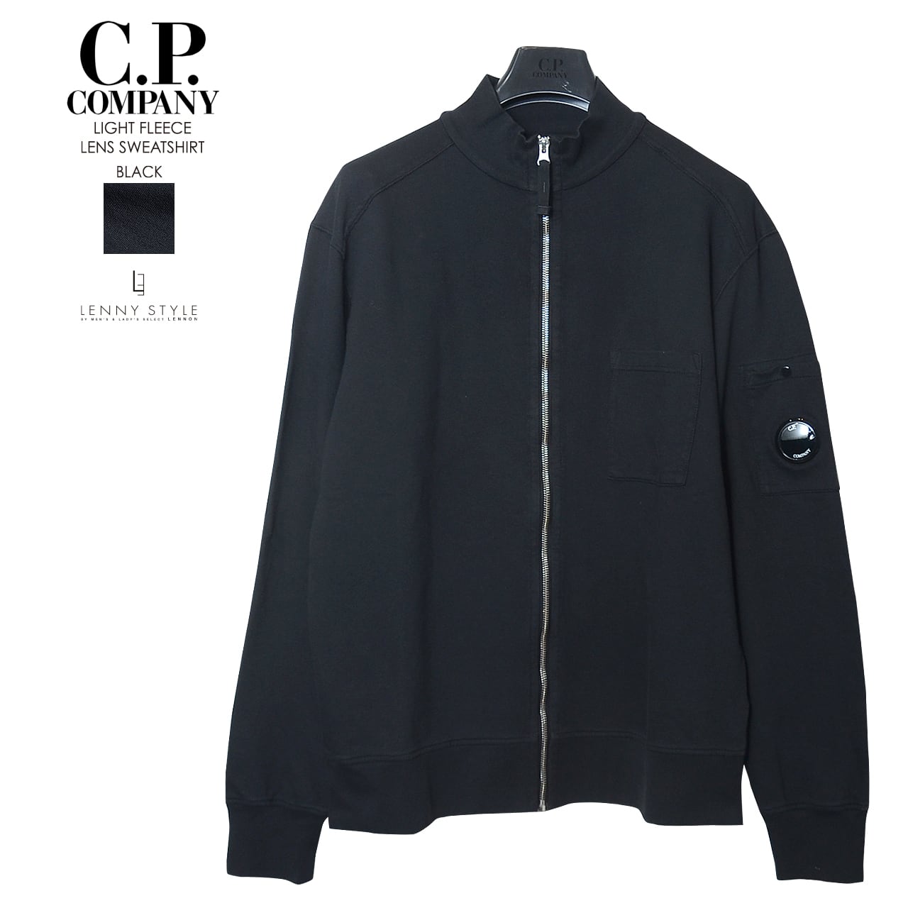CPカンパニー ( シーピーカンパニー ) ( C.P.COMPANY )ライトフリース トラックジャケット ( ジップ ライトスエット ) ( Light Fleece Lens Sweatshirt ) - BLACK - ブラック