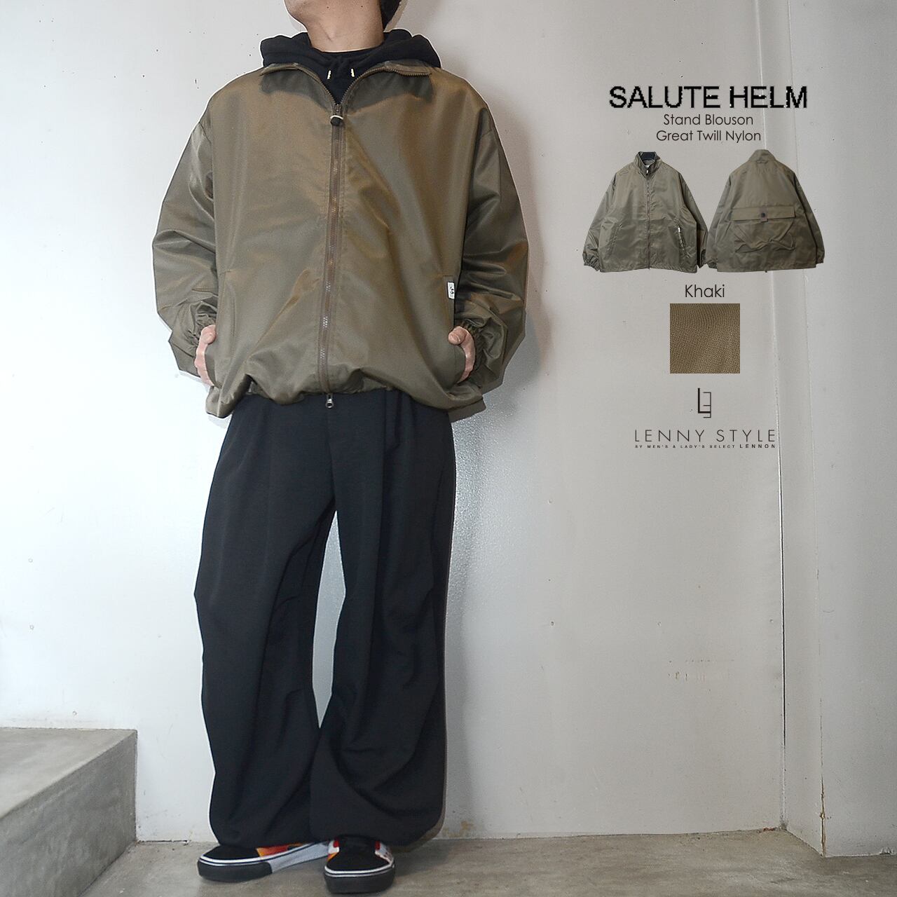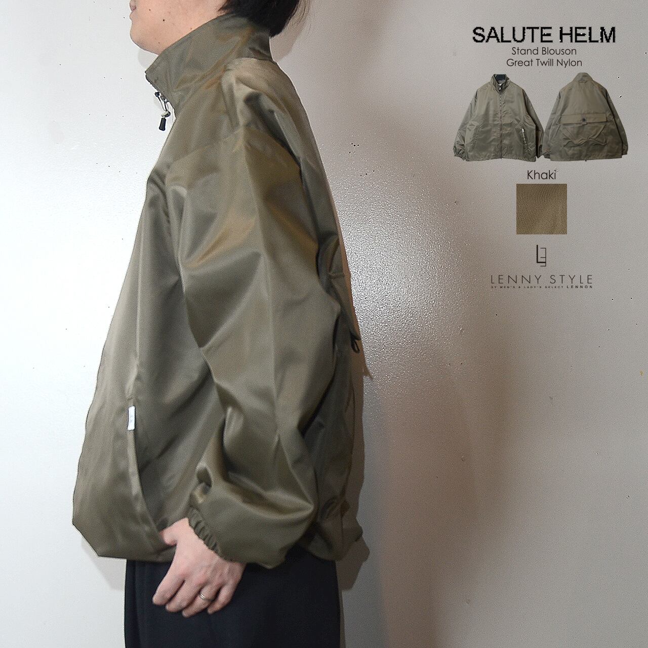 サルートヘルム ( SALUTE HELM )グレイトツイルナイロン スタンドブルゾン - カーキ
