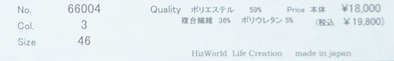 素材:ポリエステル59% 複合繊維36% ポリウレタン5%