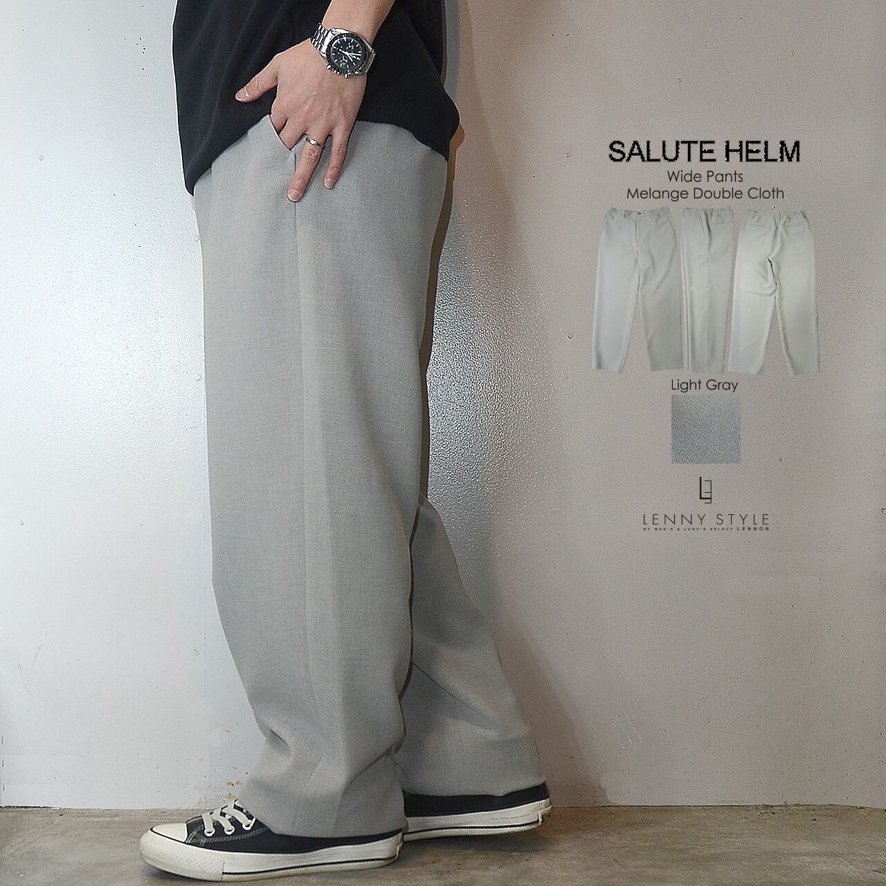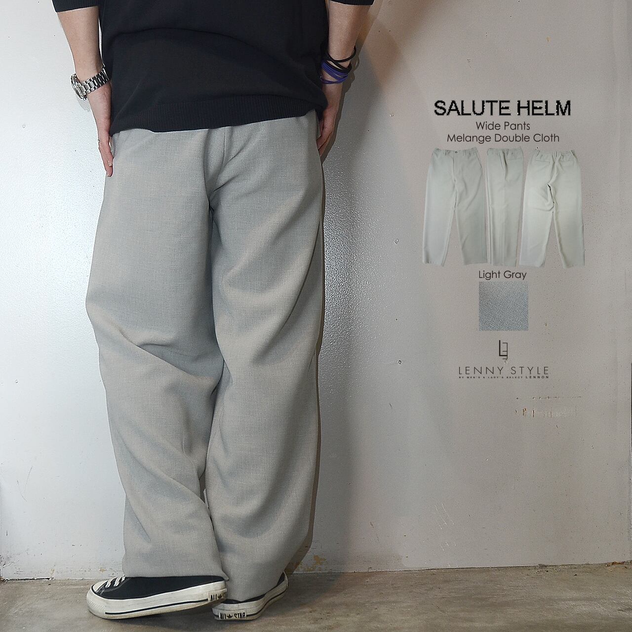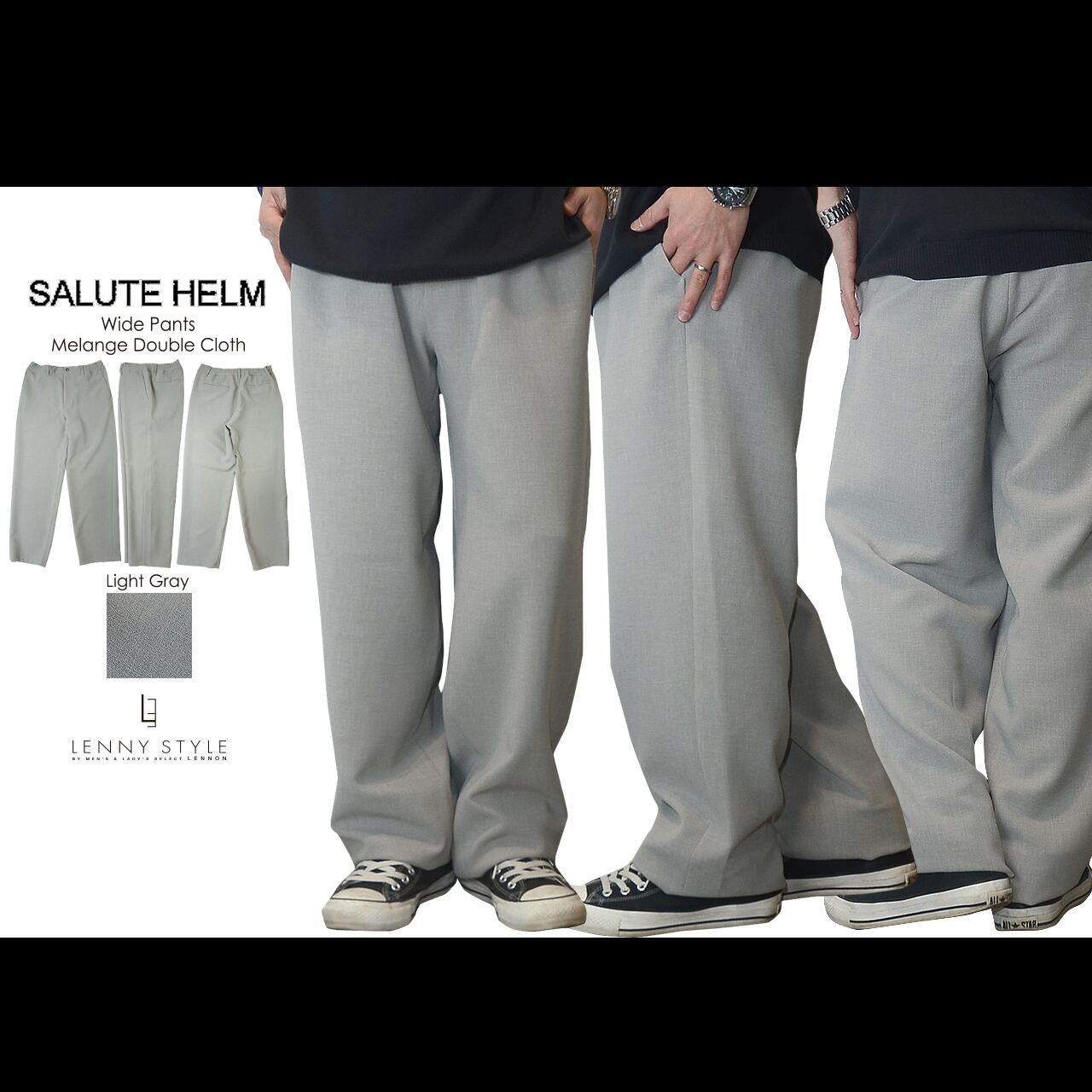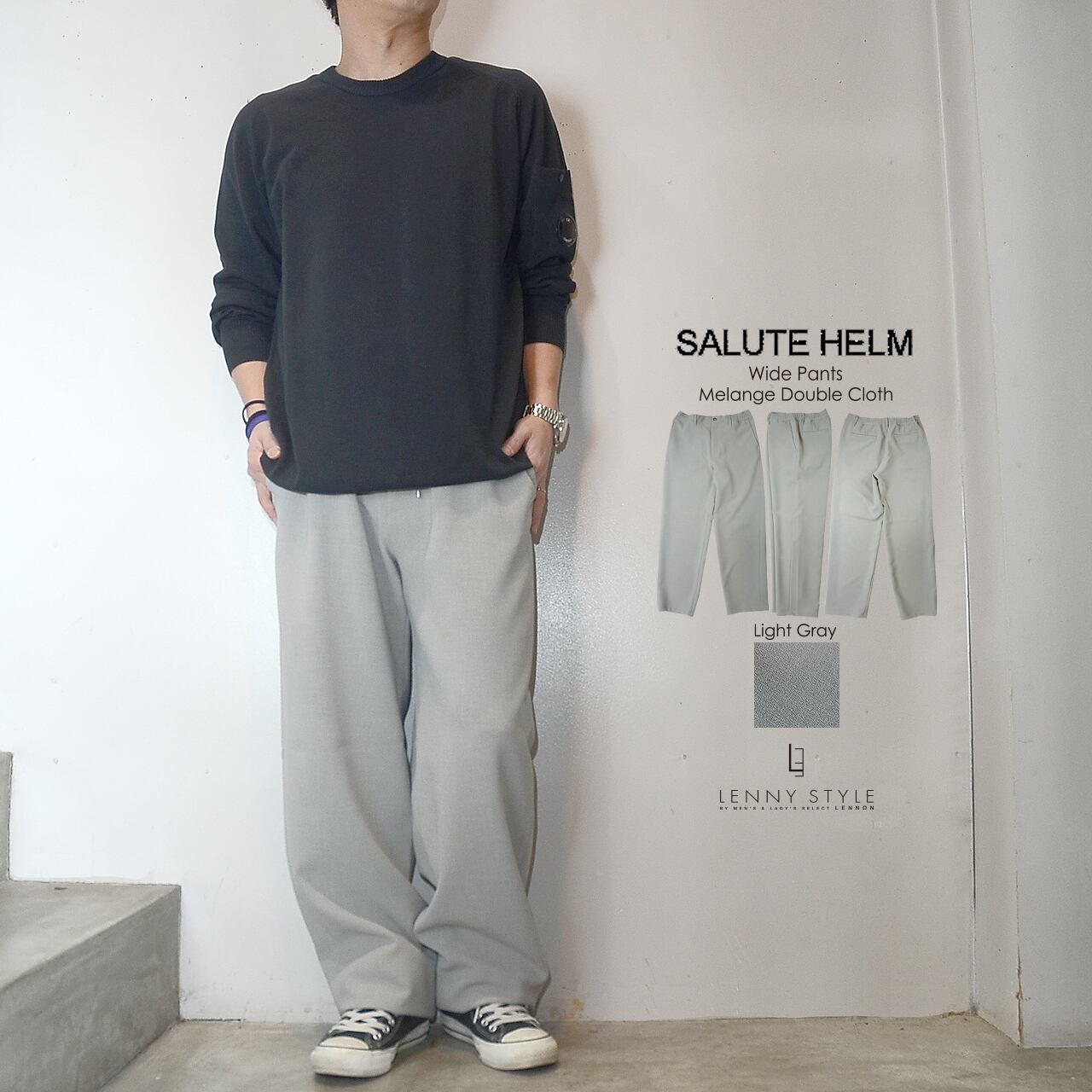 サルートヘルム ( SALUTE HELM )梳毛トップ調ダブルクロス ワイドパンツ - ライトグレー