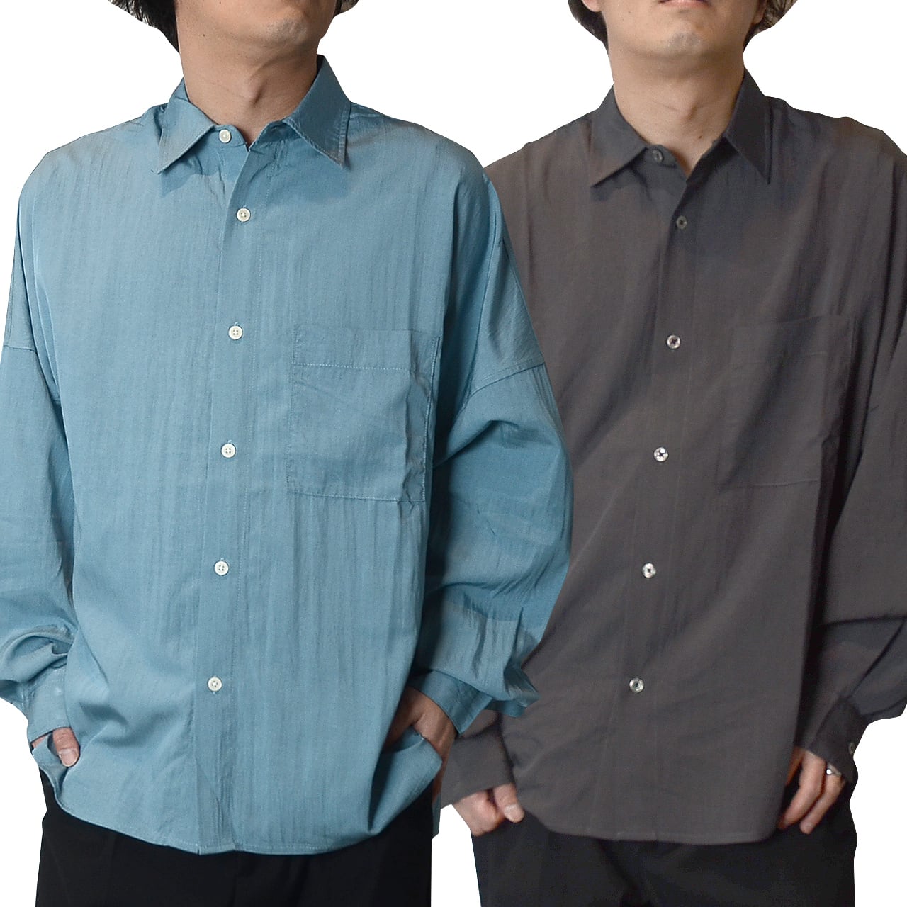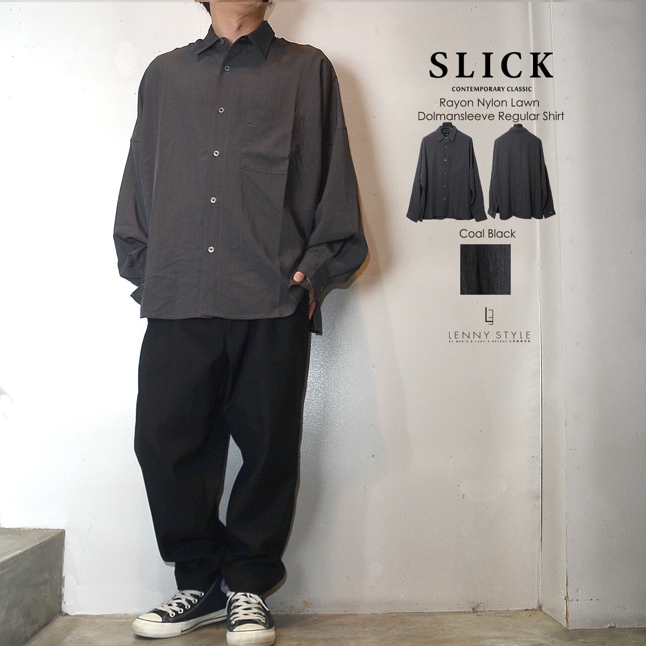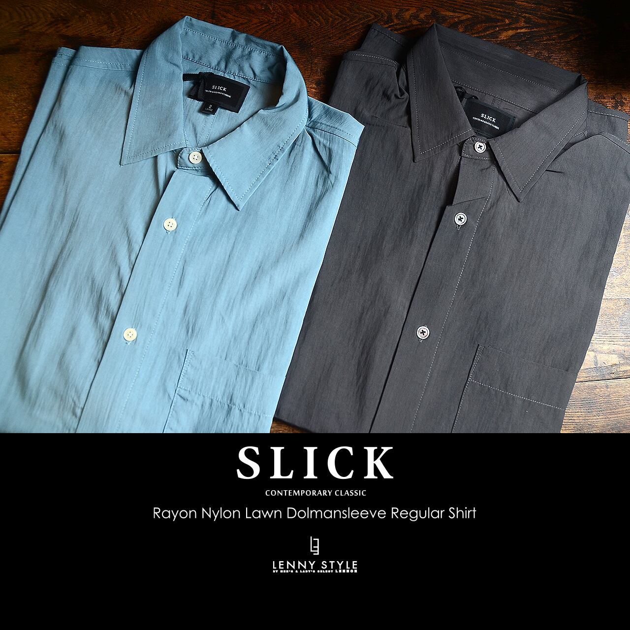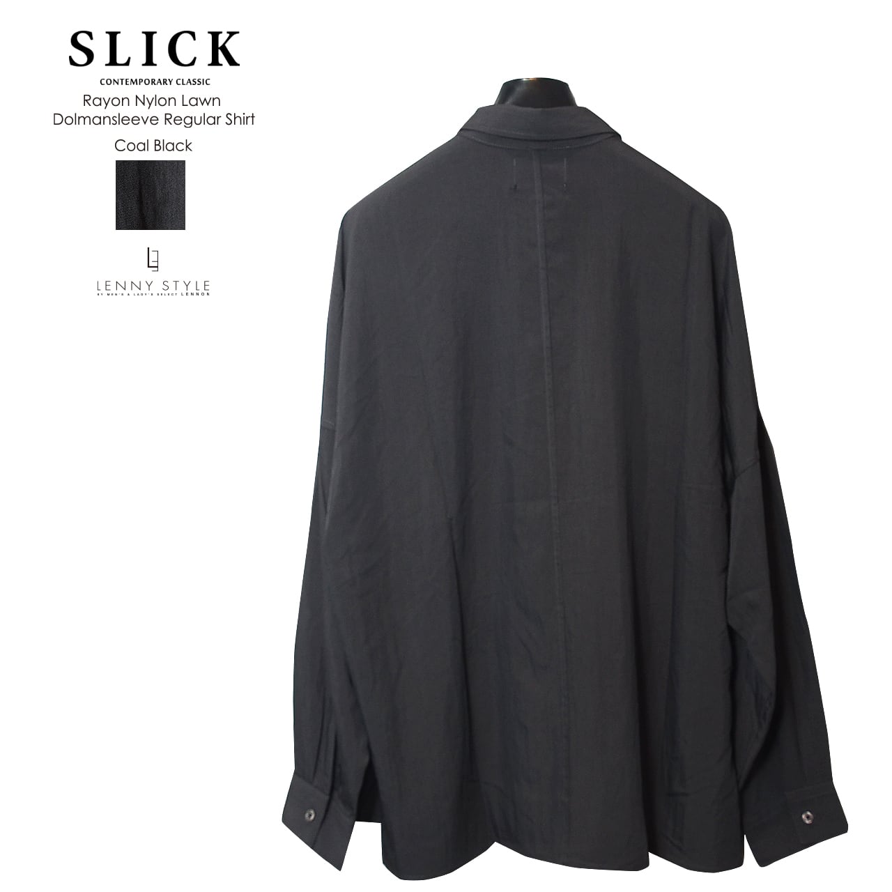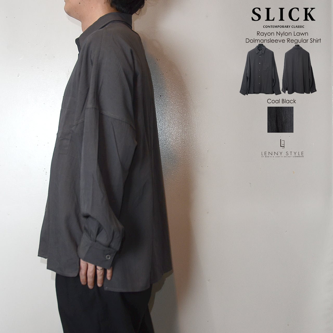 SLICK ( スリック ) ドルマンスリーブ長袖シャツ - ( Rayon Nylon Lawn Dolmansleeve Regular Shirt )サックス / コールブラック