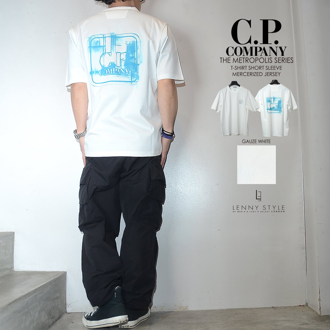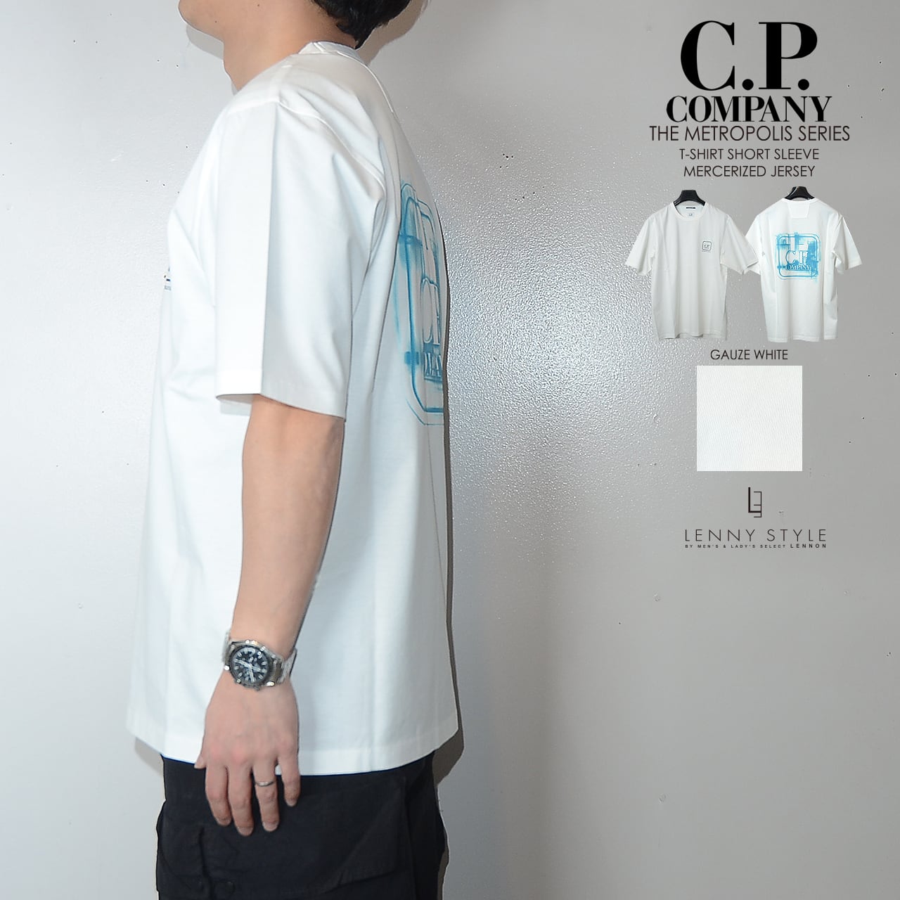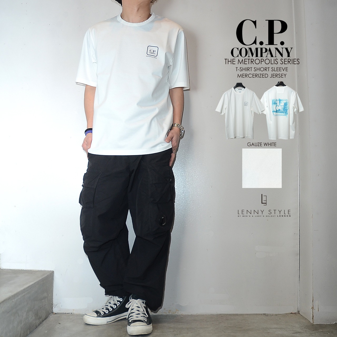 CPカンパニーのコレクションライン「THE METROPOLIS SERIES ( メトロポリスシリーズ )」マーセライズド・コットン・ジャージー製の半袖Tシャツ。