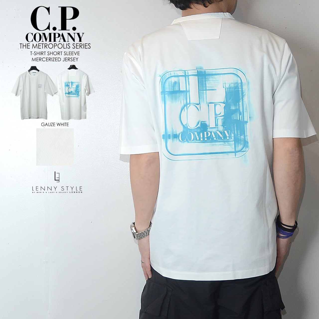 CPカンパニー ( シーピーカンパニー ) ( C.P.COMPANY ) メトロポリスシリーズ 半袖グラフィックプリント Tシャツ( THE METROPOLIS SERIES )( MERCERIZED JERSEY SHORT SLEEVE PRINTED BADGE T-SHIRT ) - GAUZE WHITE - ガーゼホワイト - ( 20CLTS055A )