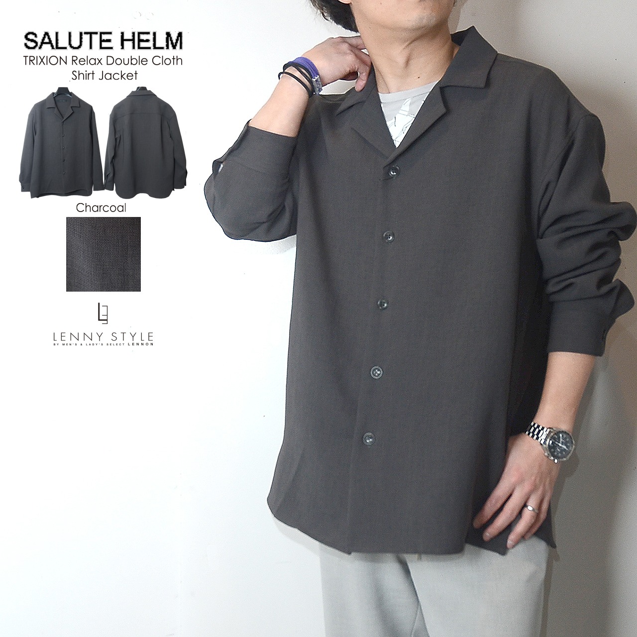 サルートヘルム ( SALUTE HELM )リラックスダブルクロス オープンカラー シャツジャケット ( TRIXION )- チャコール