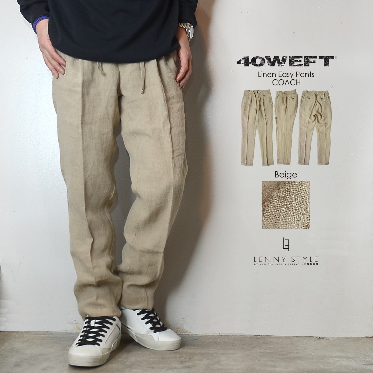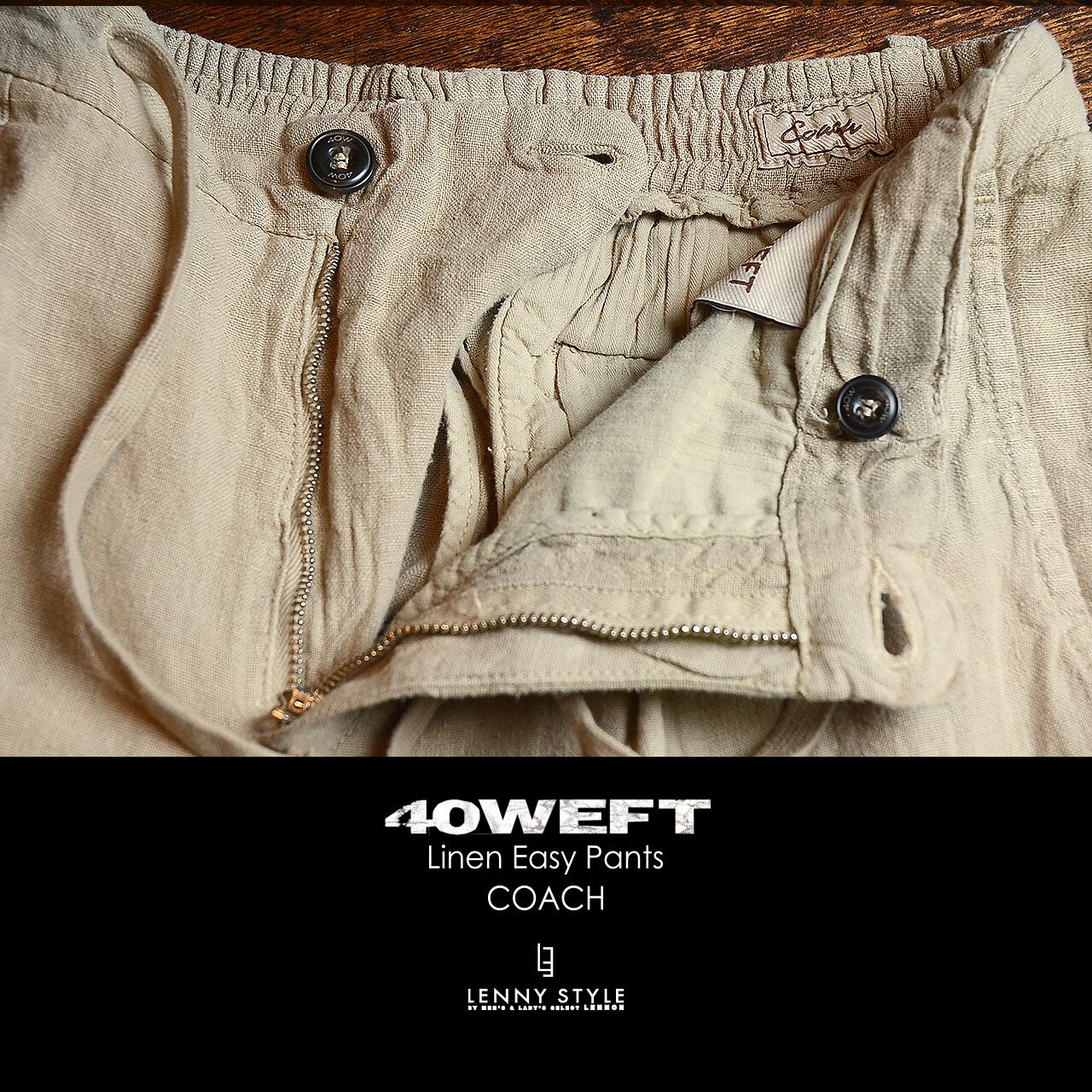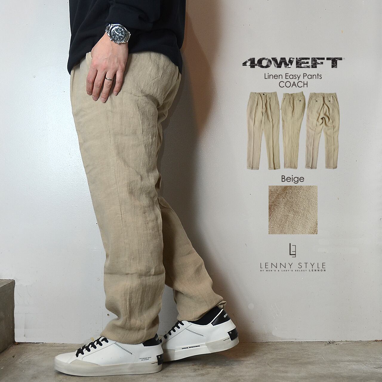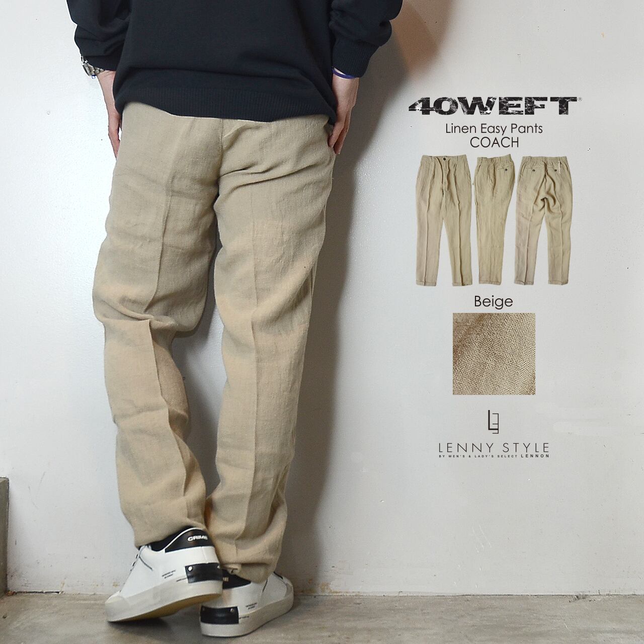 40WEFT ( フォーティーウェフト ) ワンタック リネン イージーパンツ -( COACH ) ( EASY FIT ) - ベージュ- ( 4W12014 )