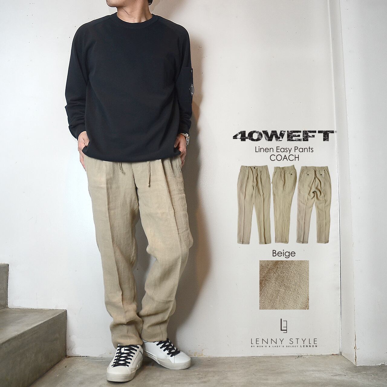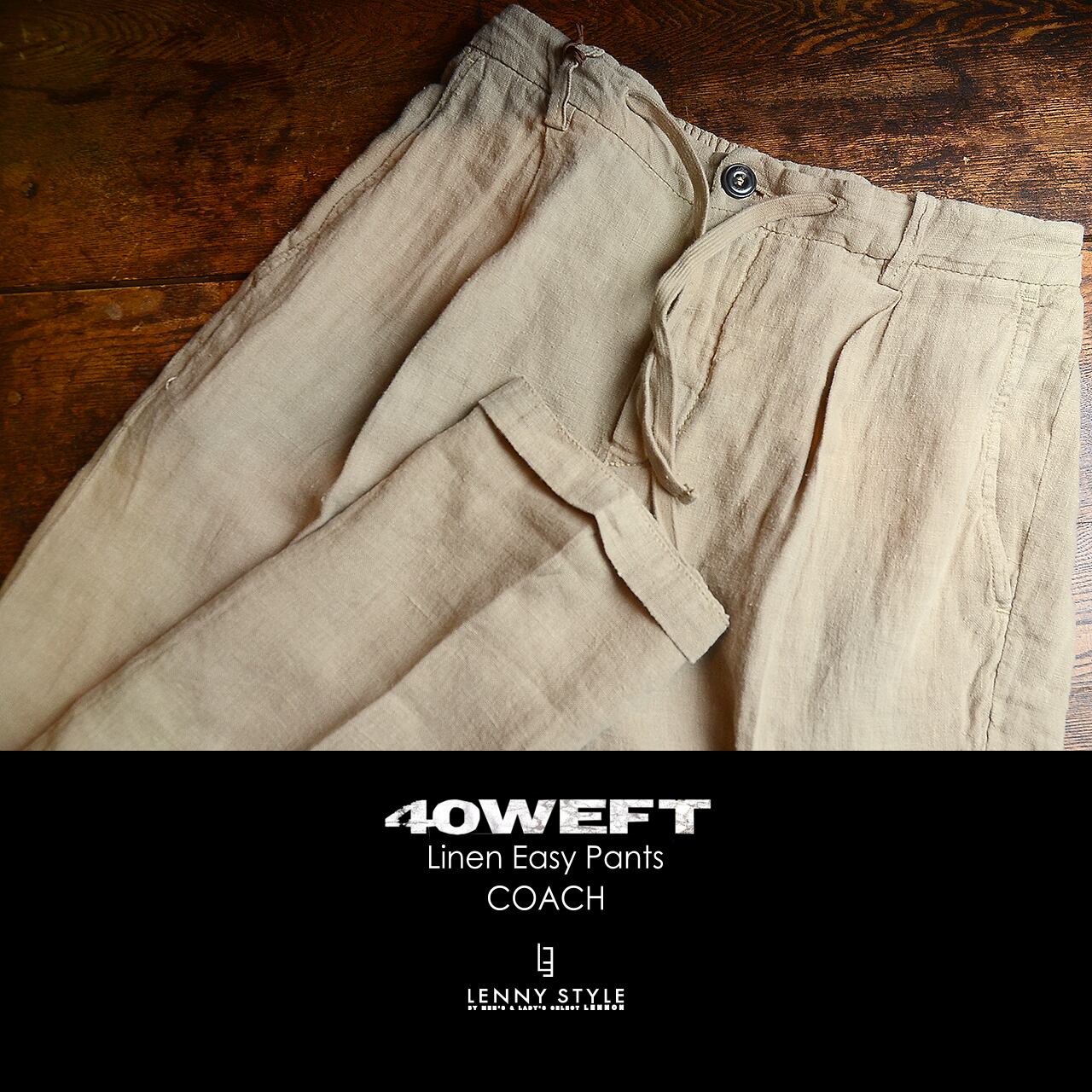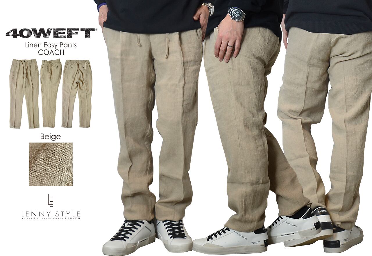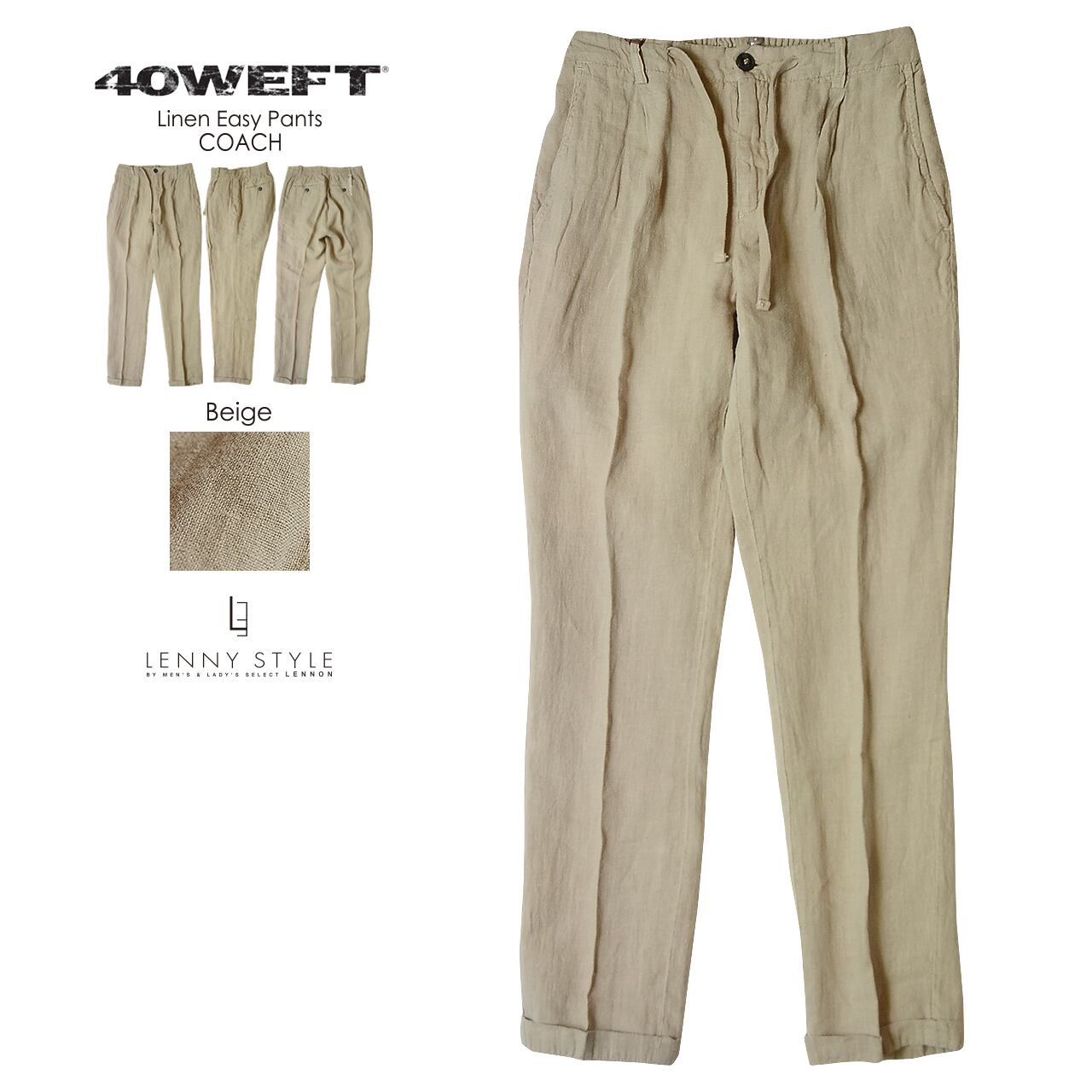 40WEFT ( フォーティーウェフト ) ワンタック リネン イージーパンツ -( COACH ) ( EASY FIT ) - ベージュ- ( 4W12014 )