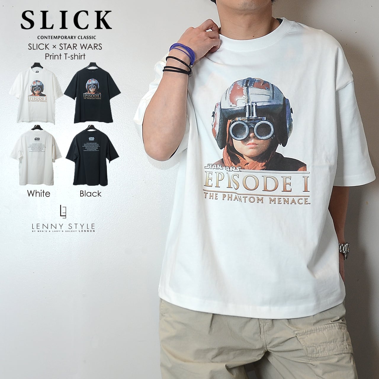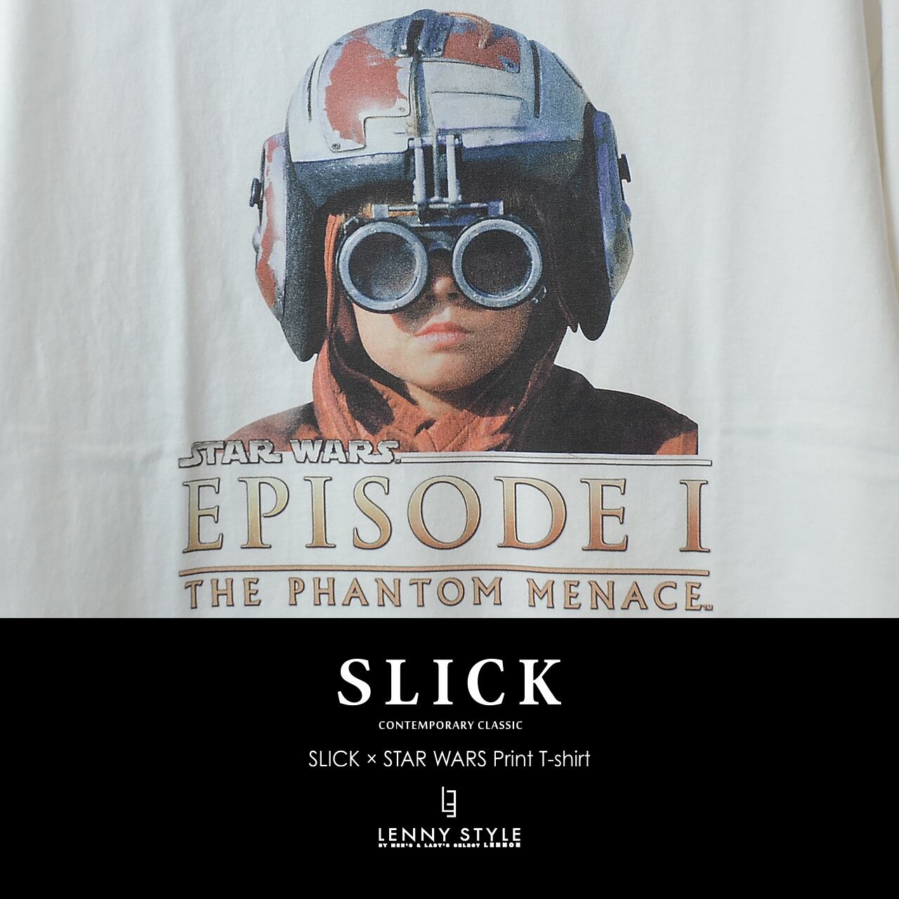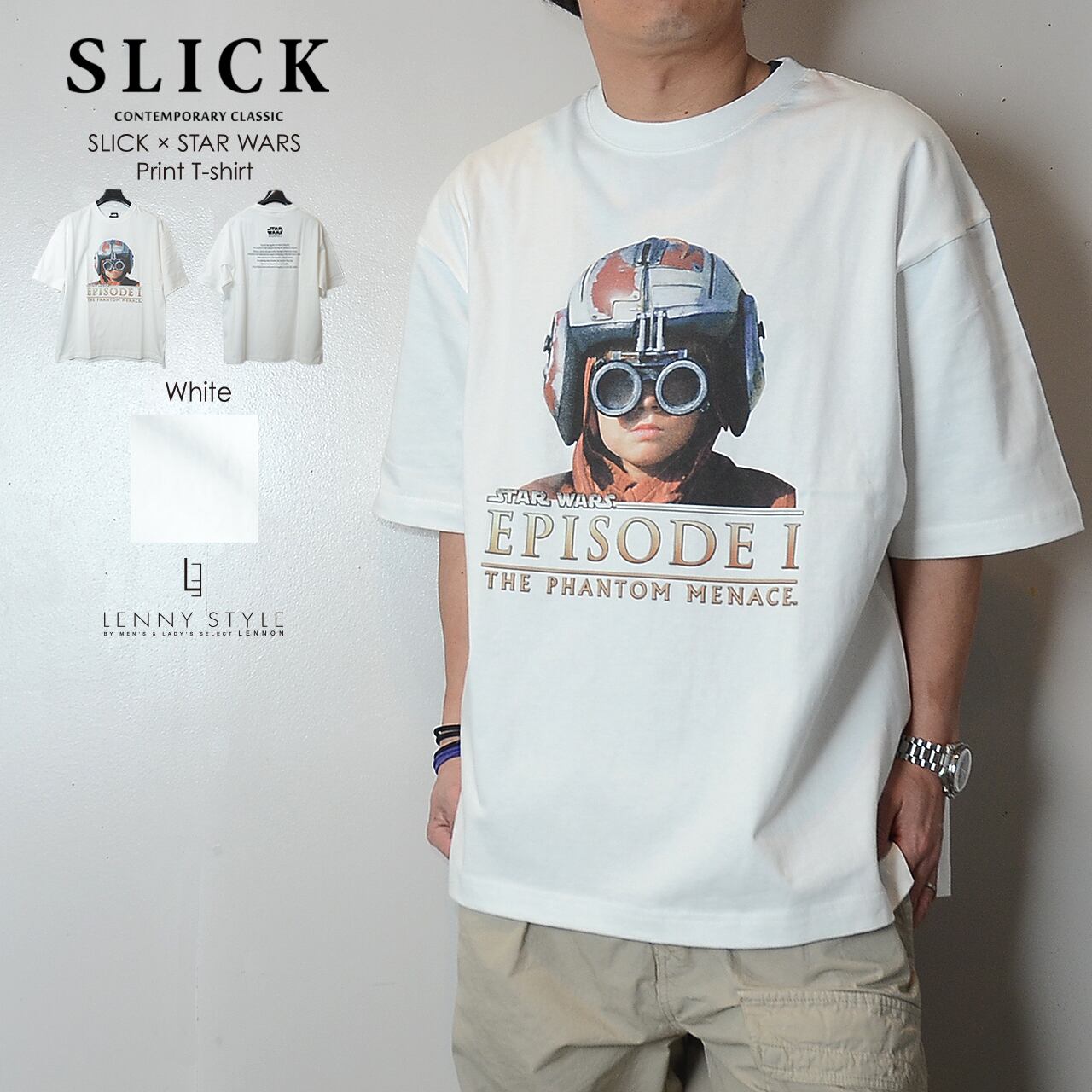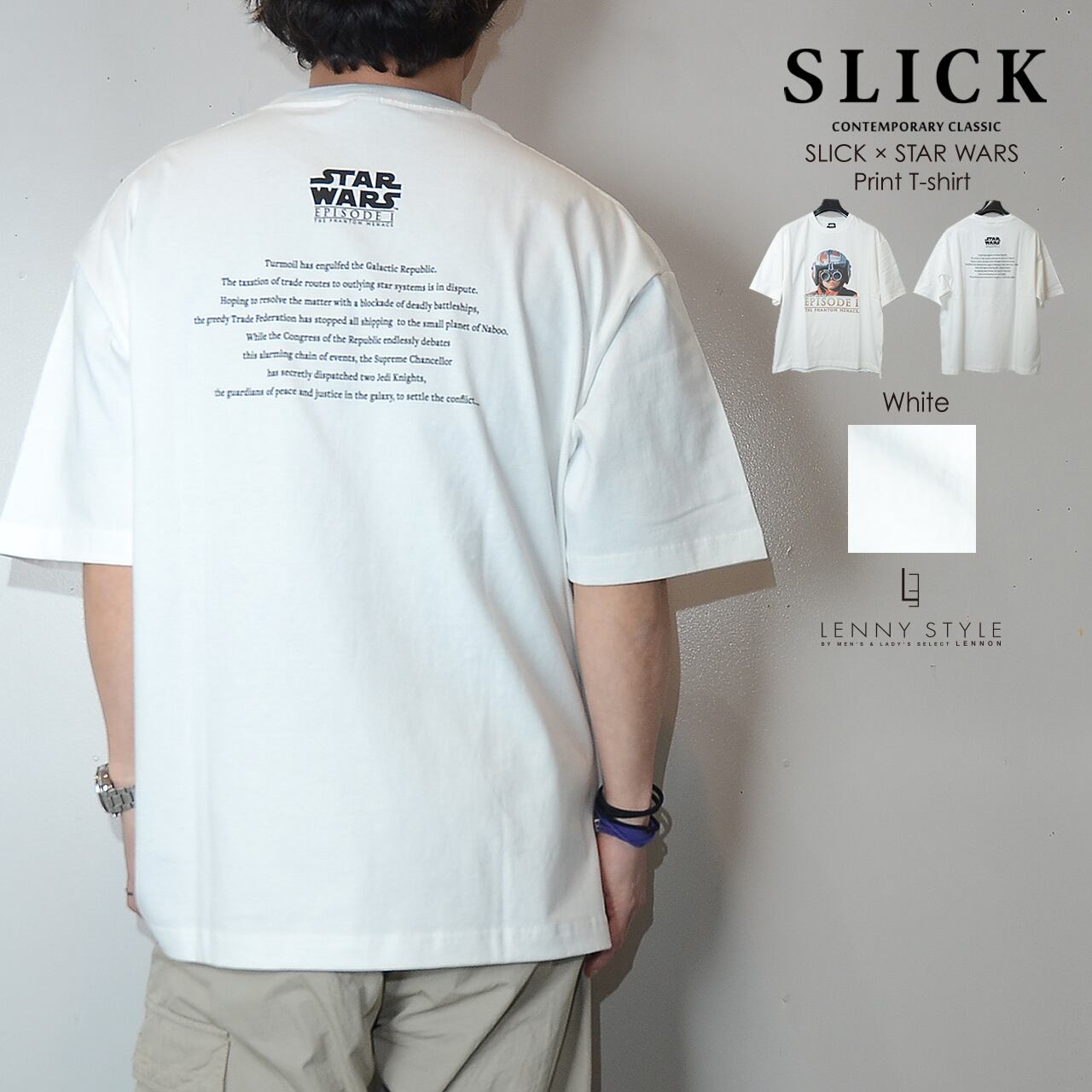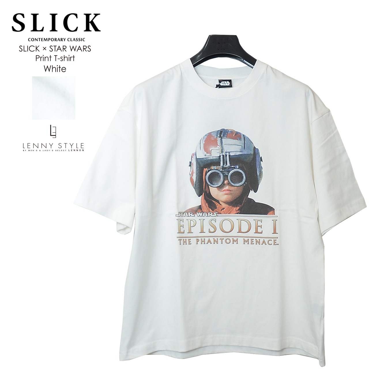 SLICK ( スリック ) スターウォーズ エピソード1 プリント 半袖 Tシャツ - アナキウンスカイウォーカー - ( SLICK × STAR WARS Print T-shirt )ホワイト / ブラック ( 5230257 )