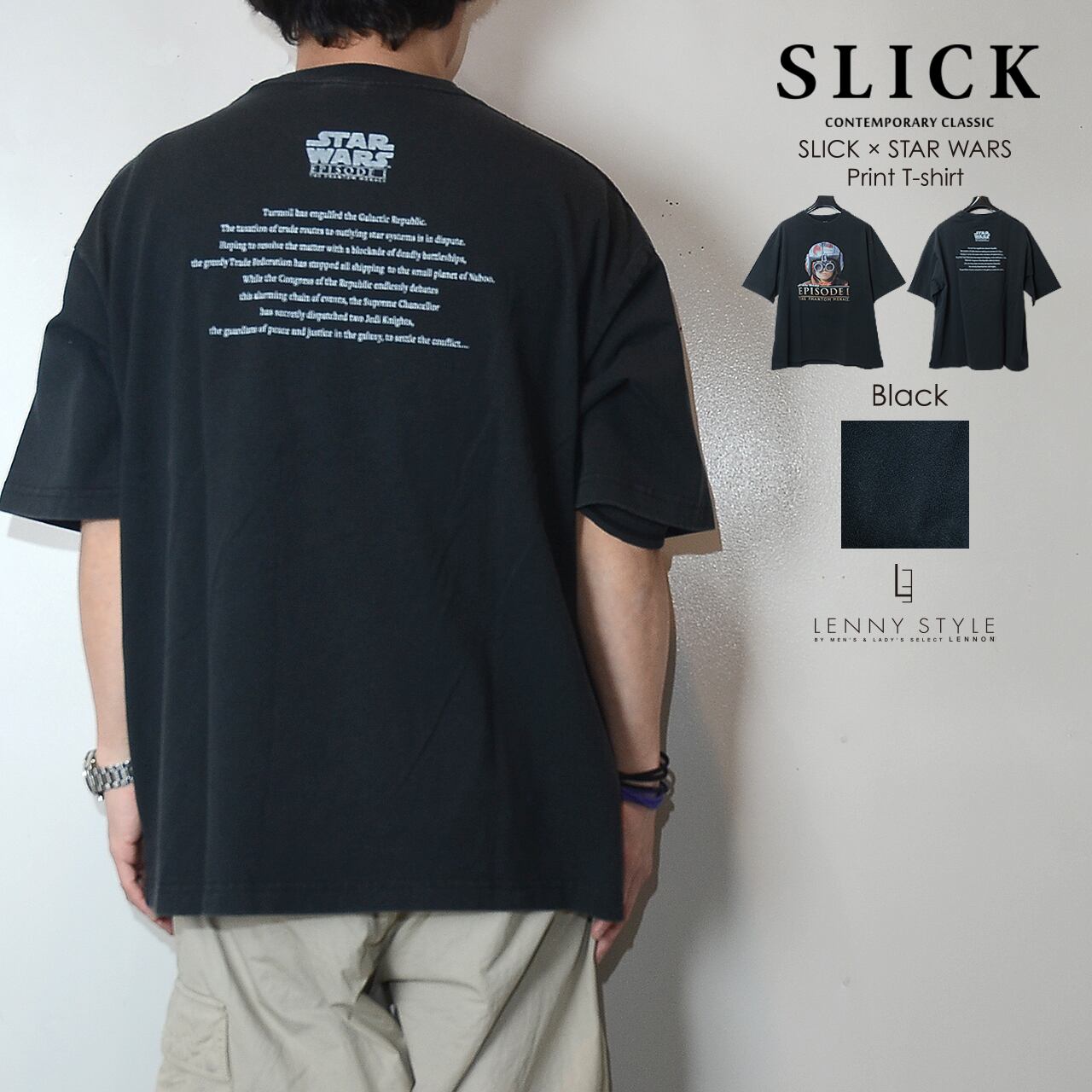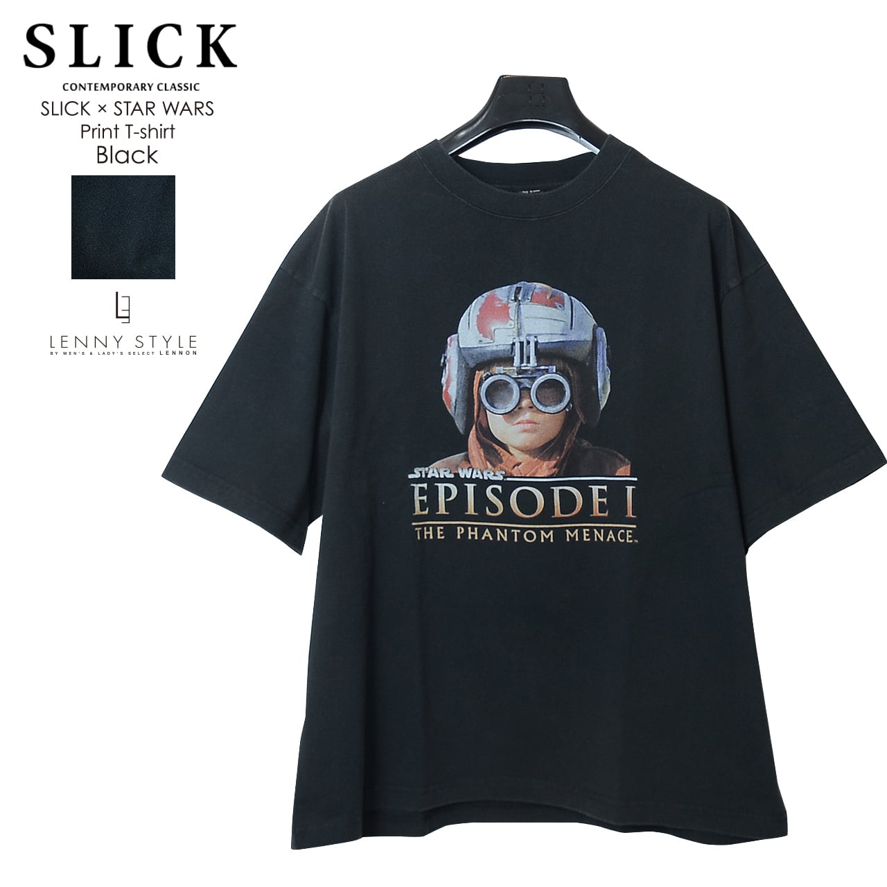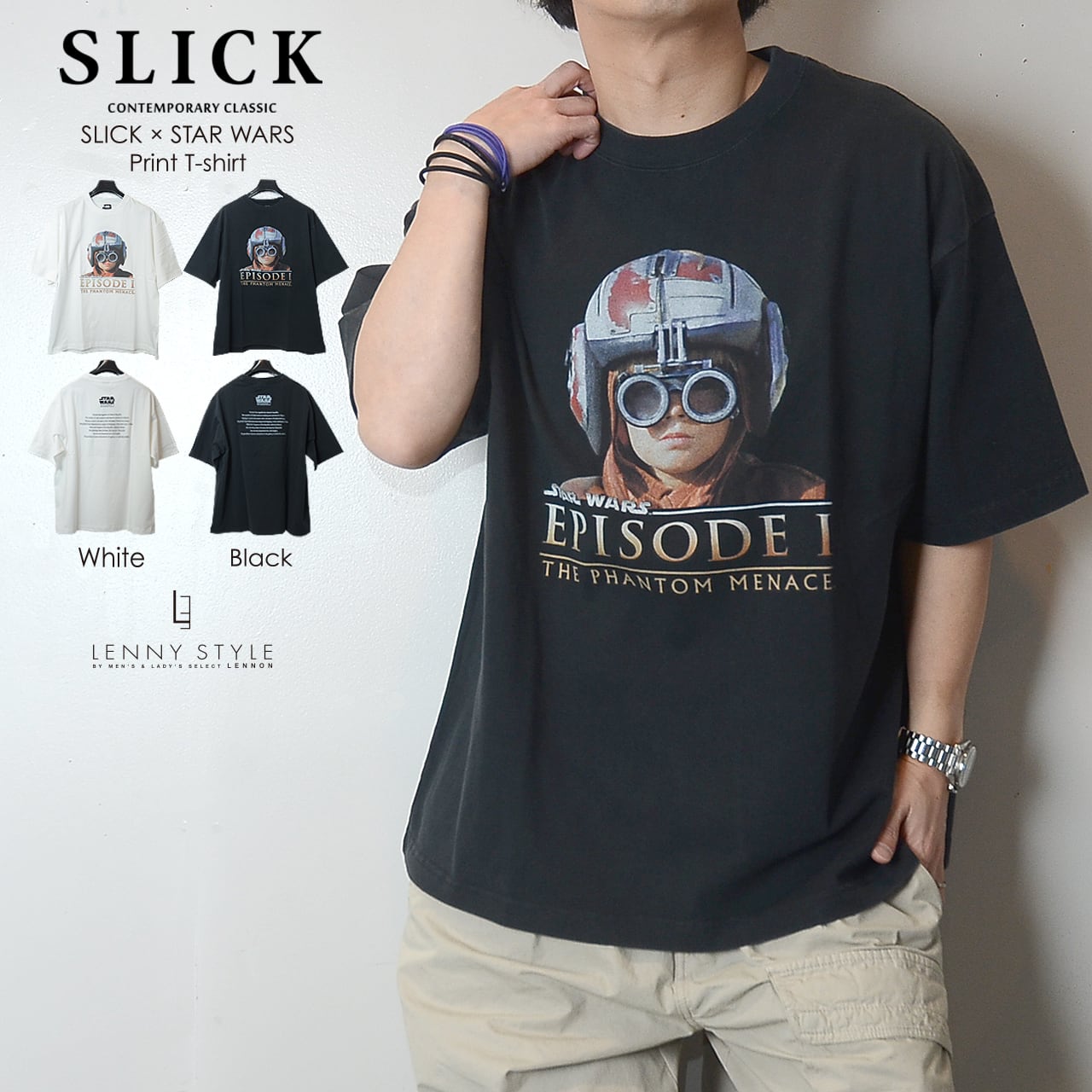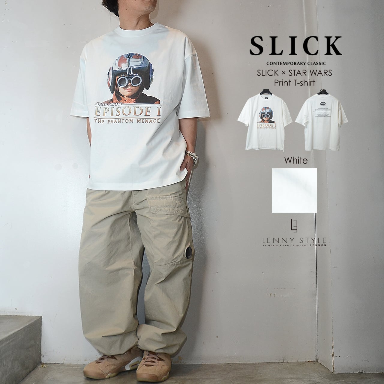 SLICK ( スリック ) スターウォーズ エピソード1 プリント 半袖 Tシャツ - アナキウンスカイウォーカー - ( SLICK × STAR WARS Print T-shirt )ホワイト / ブラック ( 5230257 )