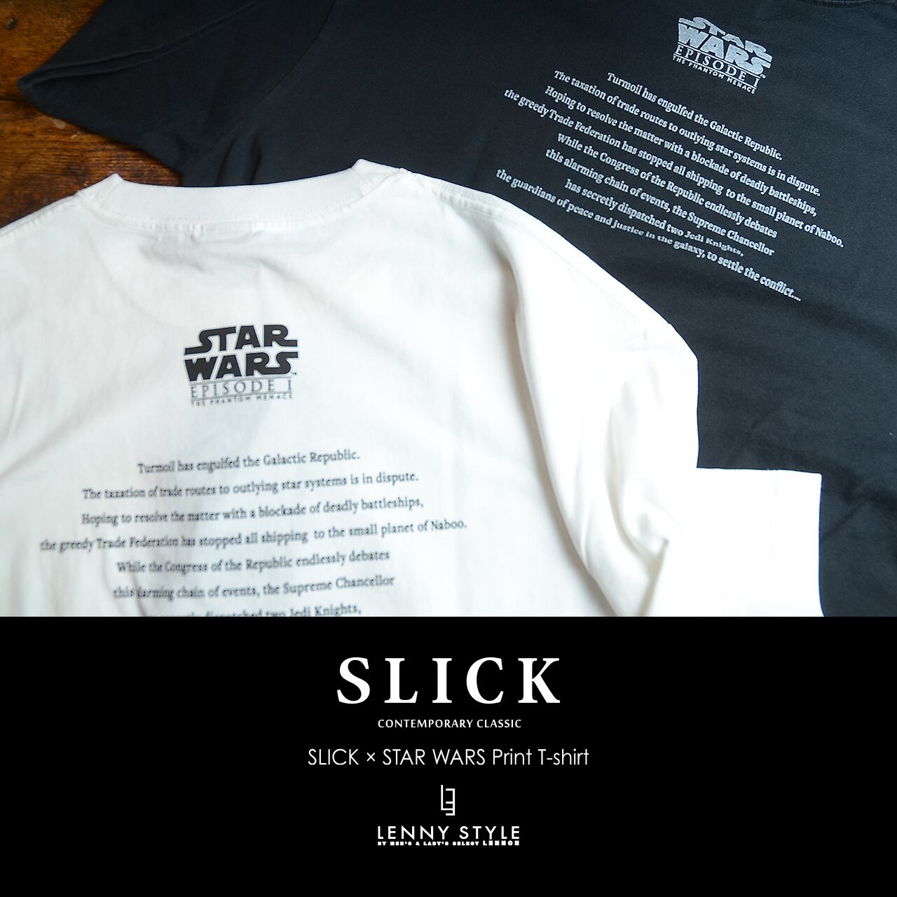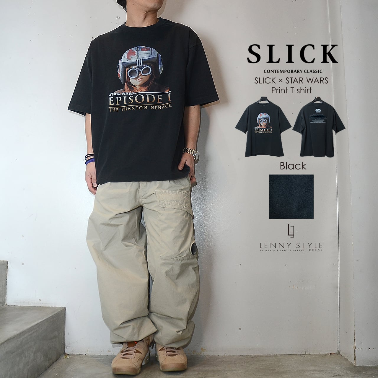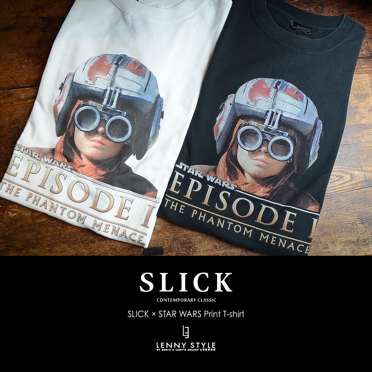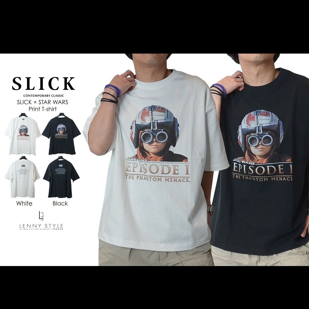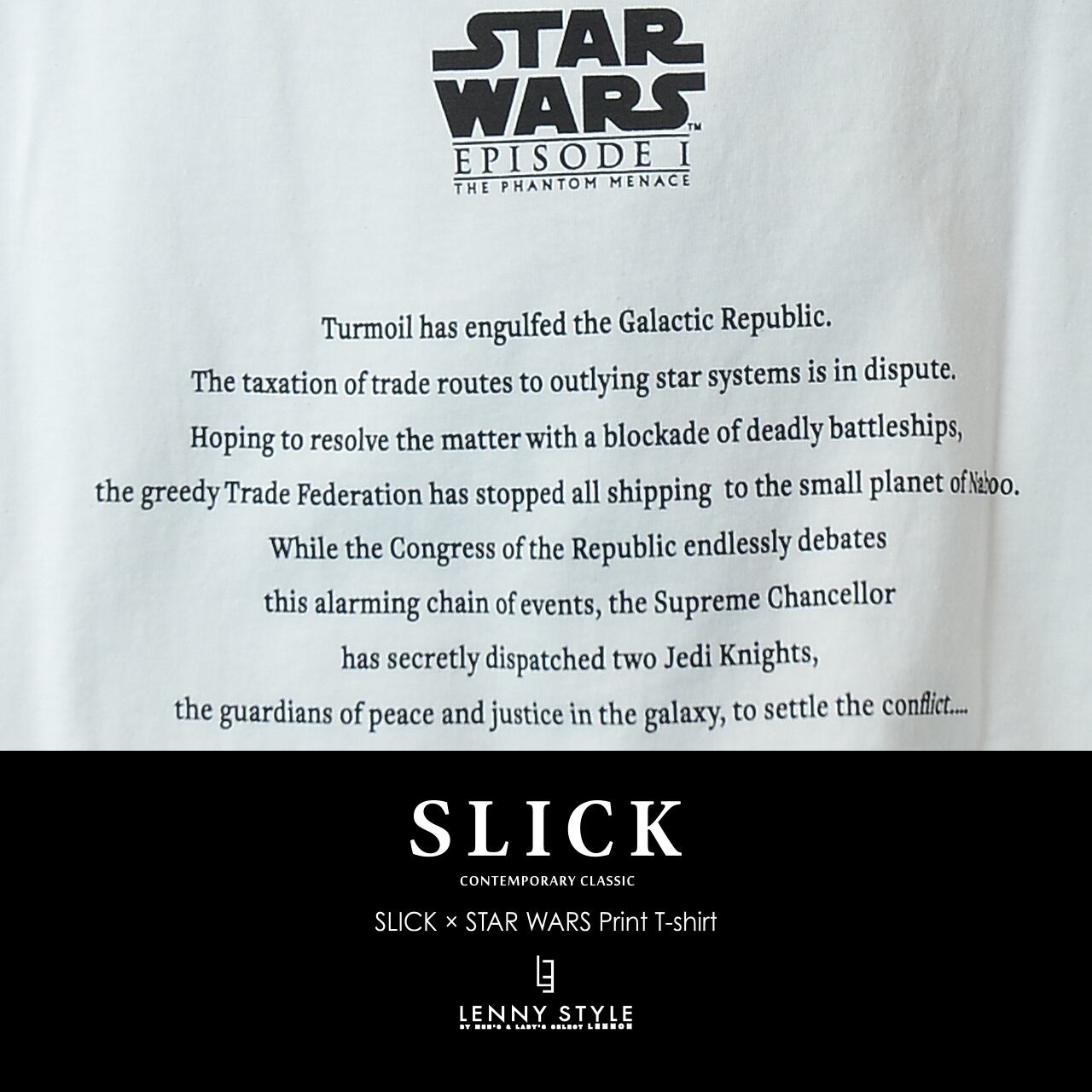 SLICK ( スリック ) スターウォーズ エピソード1 プリント 半袖 Tシャツ - アナキウンスカイウォーカー - ( SLICK × STAR WARS Print T-shirt )ホワイト / ブラック ( 5230257 )