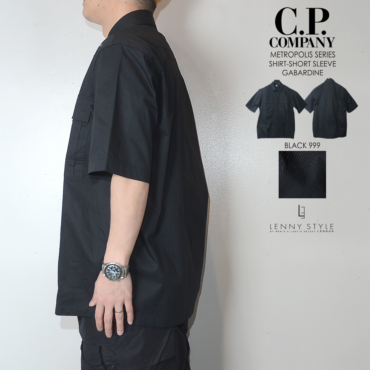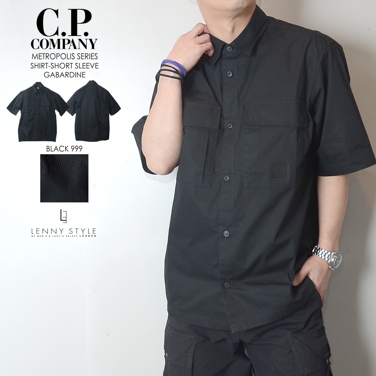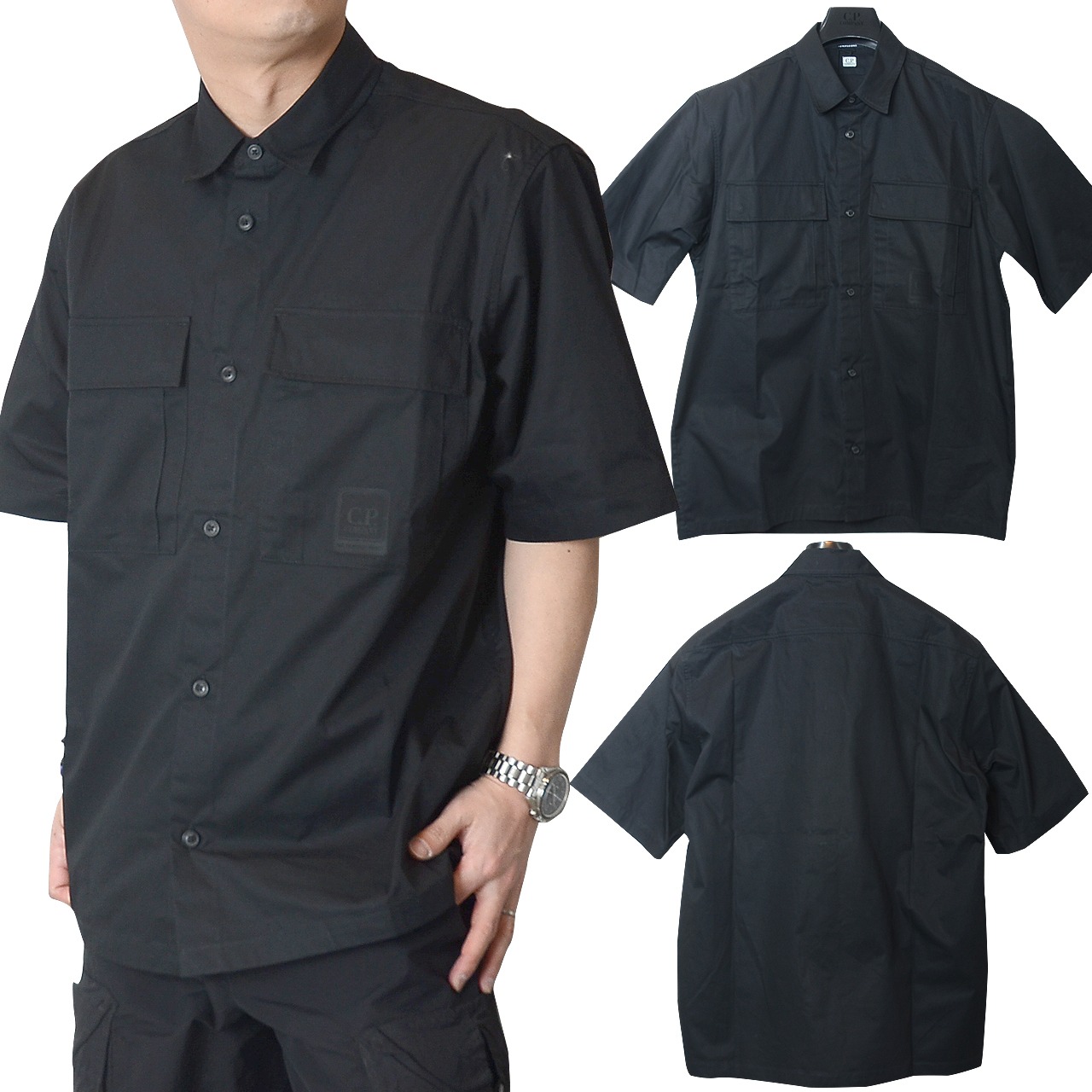 CPカンパニー ( シーピーカンパニー ) ( C.P.COMPANY ) メトロポリスシリーズ 半袖ワークシャツ( METROPOLIS SERIES )( SHORT SLEEVE SHIRT - GABARDINE ) - BLACK - ブラック - ( 20CLSH023A )