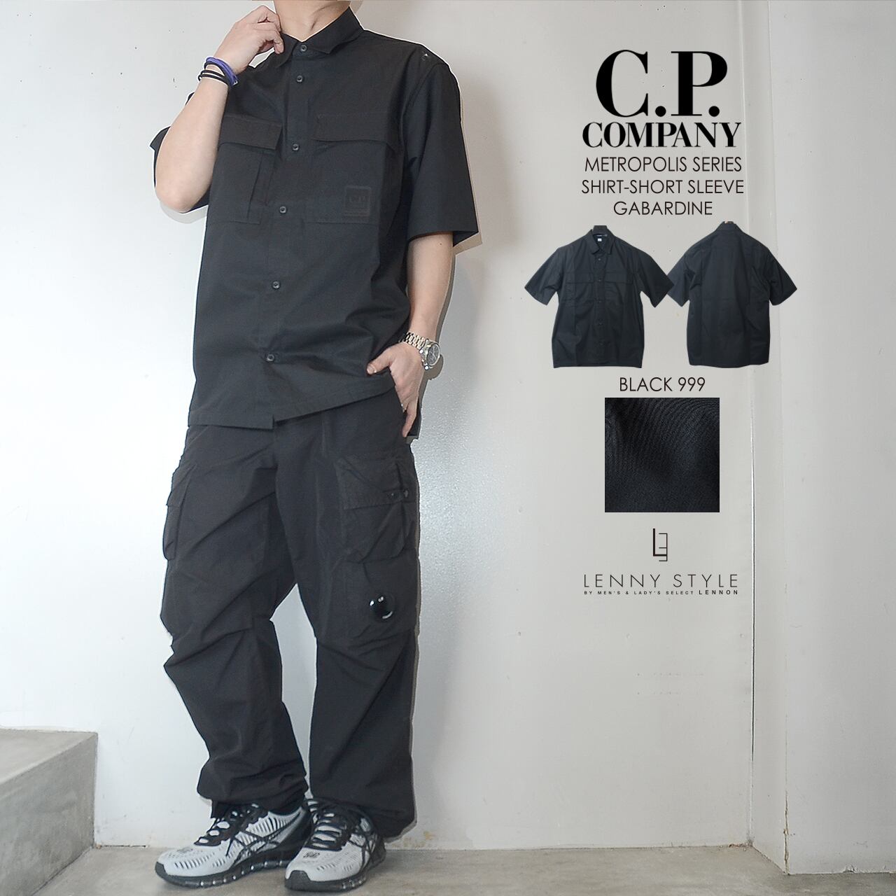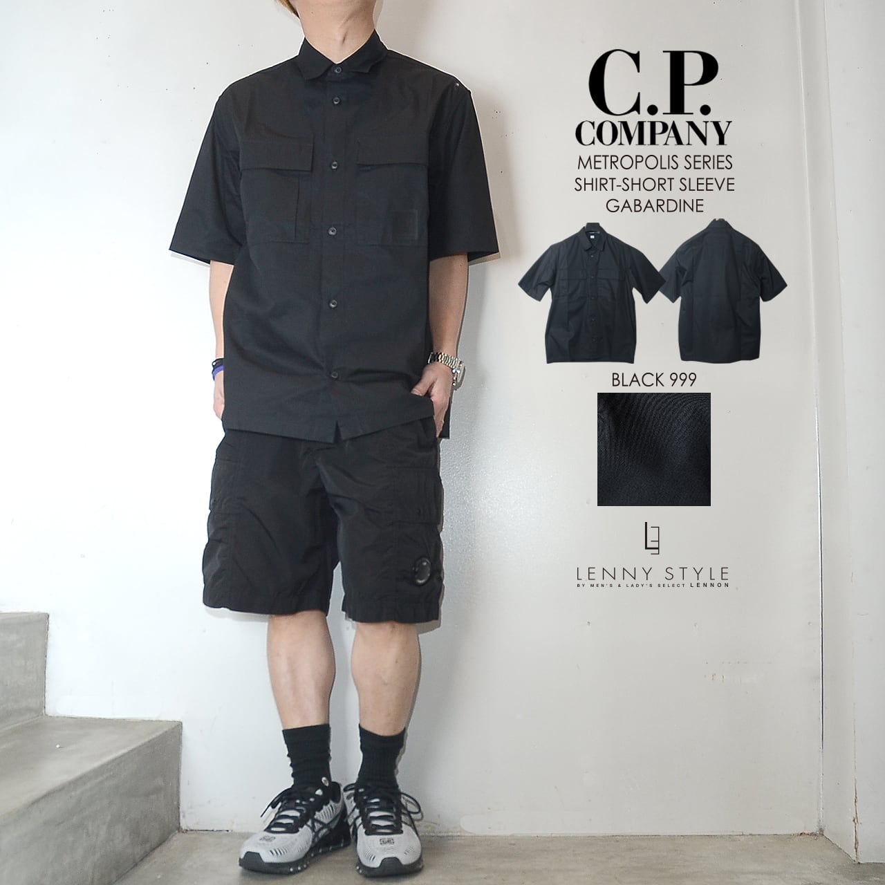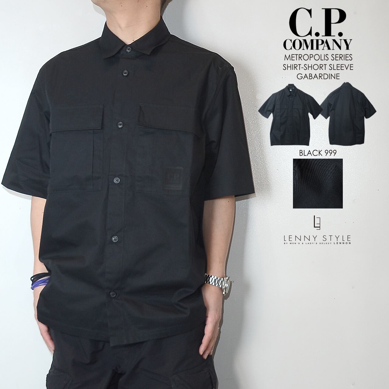 CPカンパニー ( シーピーカンパニー ) ( C.P.COMPANY ) メトロポリスシリーズ 半袖ワークシャツ( METROPOLIS SERIES )( SHORT SLEEVE SHIRT - GABARDINE ) - BLACK - ブラック - ( 20CLSH023A )