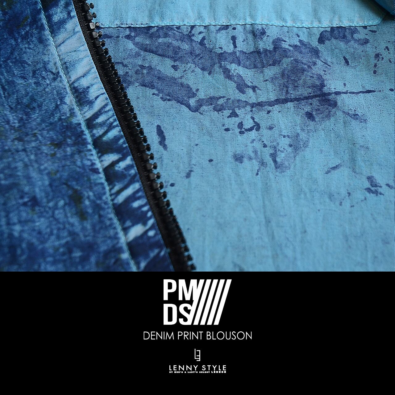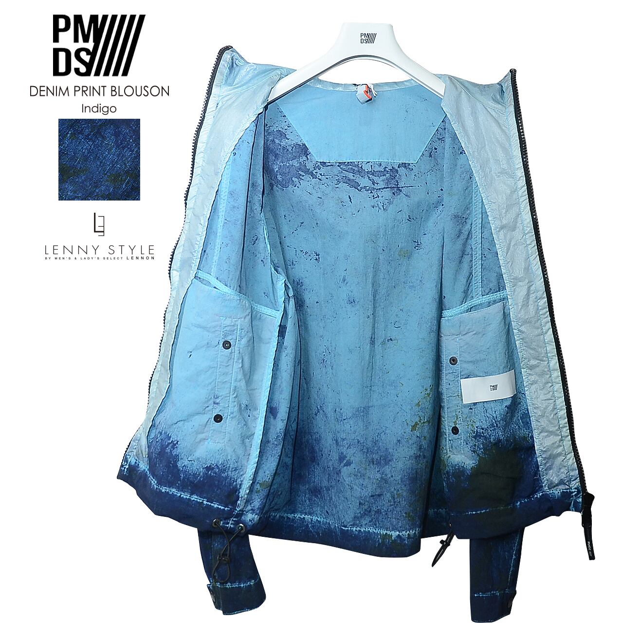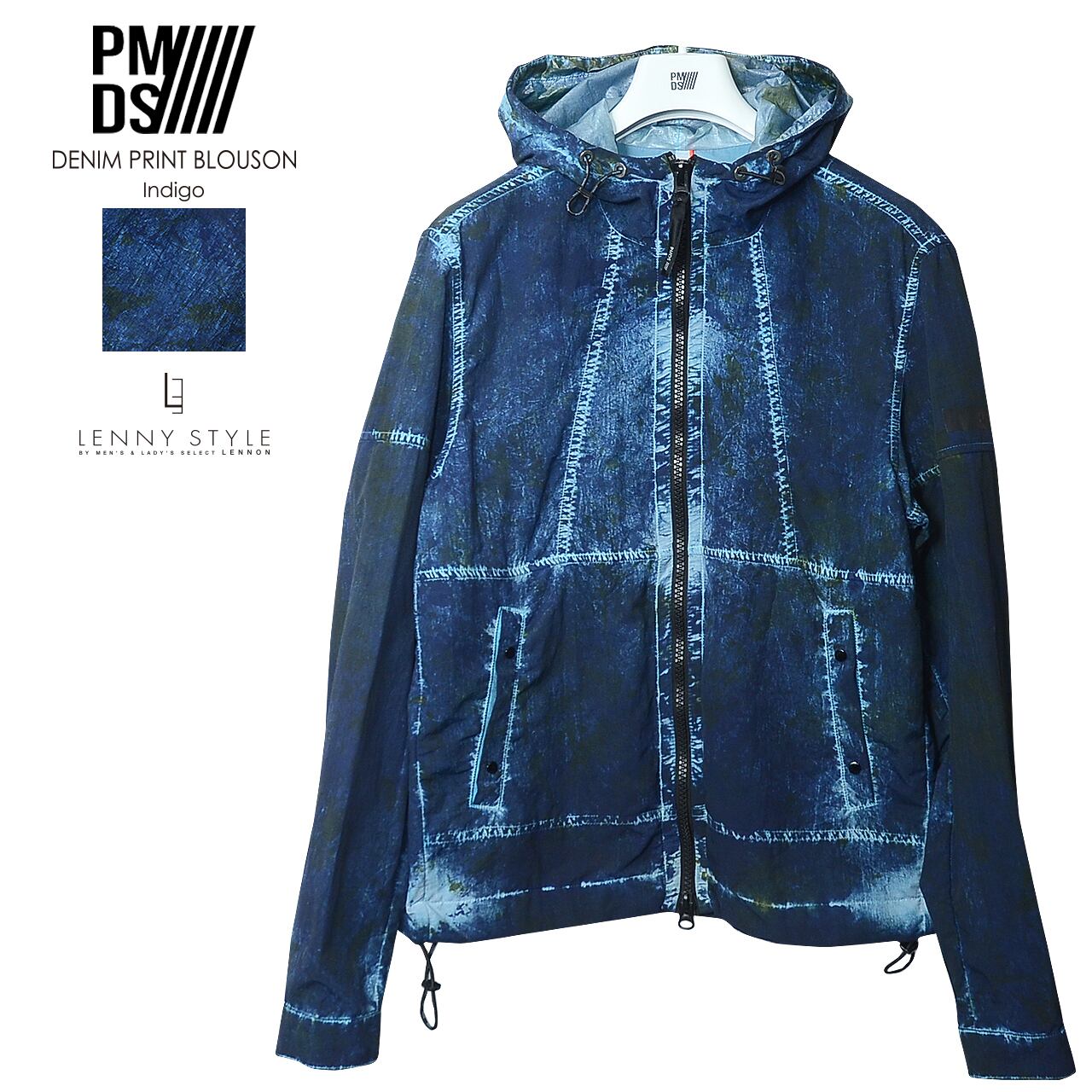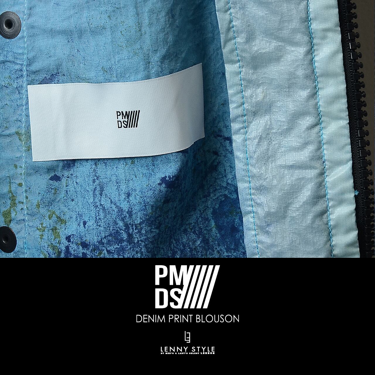PMDS ( P.M.D.S. ) ( ピーエムディーエス ) デニムプリント ジップフーディー -( ジップ ブルゾン ) ( VARIANTE UNICA ) - インディゴ ( 610591114002 )